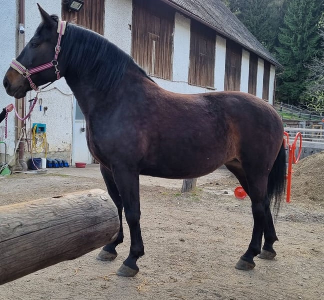 Valentina, auch liebevoll "Valy" genannt, ist eine 5-jährige Warmblut-Noriker-Mix Stute mit barockem Erscheinungsbild. Sie überzeugt durch ihre Ausstrahlung, ihre Präsenz und ihr großes Potenzial als vielseitiges Freizeitpferd. Valy bringt Erfahrung in der Dressur, im Springen sowie beim Ausreiten mit. Im Umgsng ist die bei klarer Führung brav und kooperativ. Sie möchte fair behandelt werden und entwickelt bei guter Betreuung und. Umgebung eine enge Bindung zu ihrem Menschen. Hängerfahren kennt sie bereits. Schweren Herzens wird Valy aufgrund von Zeitmangel verkauft. Geduscht wird ein liebevoller, verlässlicher Platz, an dem sie gefördert wird und die Aufmerksamkeit bekommt, die sie verdient. Bei passender Haltung ist sie ein tolles, treues Freizeitpferd!