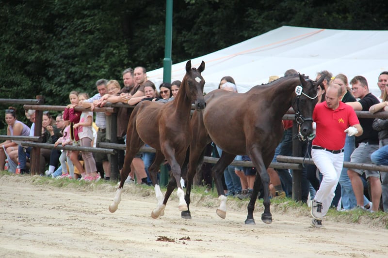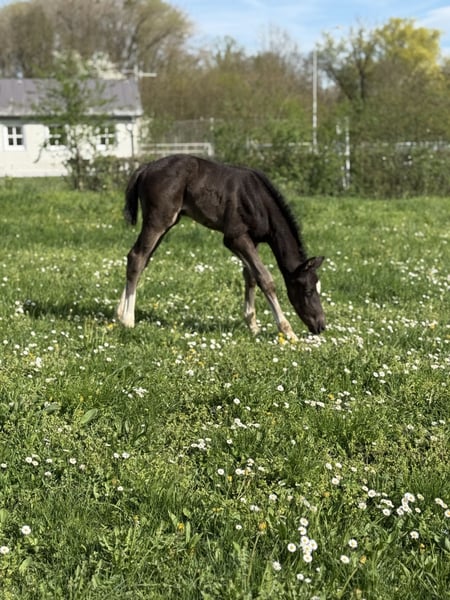 💫Primero💫 Fecha de nacimiento: 01.04.2025 Sexo: Caballo entero Tamaño: Altura final aprox. 164 cm Ascendencia: Padre: Pjethro (Kjento x Desperado) Madre: Verb.St. Primavera (St.Schufro x Millenium) Se vende aquí un sueño de niña. Primero es un hermoso potrillo con 4 patas blancas. Crece de manera adecuada en un grupo de potrillos. Desde su nacimiento, tiene un carácter excepcional, es un alumno modelo sin igual. Por supuesto, ha sido presentado regularmente al herrador y también ha sido desparacitado de manera regular. Nunca ha estado enfermo ni nada por el estilo. Puede quedarse para su crianza y crecer con sus actuales compañeros. Primero fue premiado en el Campeonato Regional con calificaciones de 8.0. (Tipo 8.0 – Conformación y corrección 8.5 – Movimiento 8.0) Estuvo muy cerca de clasificar para el Campeonato Nacional. Su padre Pjethro es ligero y orientado al jinete, con una excelente ética de trabajo. Al igual que su padre, se muestra bajo el jinete con mucha mecánica en su movimiento, especialmente al trote y al galope, con un posterior activo por encima de la media. En el ámbito deportivo, Pjethro ha tenido un gran desempeño y se destacó en la Competencia de Sementales Hors Truck con 87.8 puntos. Cita del juez: “Este caballo tiene una gran ligereza en sus movimientos, ¡hace todo con facilidad y además tiene una excelente ética de trabajo!” Su madre está aprobada en rendimiento y ha recibido el título de yegua de premio de asociación. Primavera ya está siendo montada nuevamente y siempre se comporta bien y con corrección. Visitas, por favor, telefónicamente al 0043 676 934 73 10.