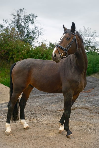 Chacomo is a 14-year-old gelding who impresses with his balanced nature, charming personality, and eagerness to learn. He is not only a loving leisure partner but also has the potential to enter the competition scene. Although he has not yet been to competitions, his positive work ethic and honest character would surely help him excel in this task. In the field, Chacomo is absolutely reliable and always behaves well. Under saddle, he is light in the hand, very comfortable to sit on, and gives his rider a consistently good feeling – a true feel-good horse. As seen in the second video, he also gets along well with younger riders at the riding license level and is always cooperative and friendly. Special feature: Chacomo exhibits a slight shivering in the hindquarters. This occasionally manifests during hoof cleaning and with the farrier as uncontrolled muscle trembling. While riding, there is no sensation of this; he moves clearly, freely, and with readiness to perform. The limitation only affects specific situations in handling and does not restrict him in training or riding. A lovable, uncomplicated gelding with that certain something – ready for many beautiful shared experiences with his new person.