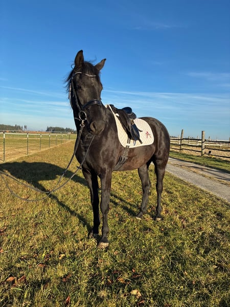 Besonderer Mensch für besonderes Pferd gesucht Nach langer Überlegung haben wir uns schweren Herzens dazu entschieden, unseren 3,5-jährigen Dressurgezogenen Österreichischen Warmblutwallach Delano in liebevolle und wertschätzende Hände zu verkaufen. Er ist unser erstes selbst gezogenes Fohlen – also direkt vom Züchter - umso schwerer fällt dieser Schritt. Facts: • geb. Mai 2022 • Abstammung: Sir Bedo x Quel Plaisir x Zonik x Donnerschwee • aktuelles Stockmaß: ca. 1,63 m • Röntgenbilder o.b.B von Ende August 2025 inkl. Rücken liegen vor welche bei ernsthaften Interesse einzusehen sind • vollständig geimpft • Zähne im August 2025 kontrolliert worden • OP versichert ohne Ausschlüsse seit über 3 Jahren • Beim Fohlenchampionat mit 8,0 bewertet Er ist unglaublich menschenbezogen, kopfklarer und ehrlicher junger Kerl. Er möchte immer gefallen und freut sich über jede Beschäftigung. Er ist total verträglich und immer gut drauf. Er kennt Box sowie täglich Koppelgang und nachts Box. Er wuchs bei mir mit einem anderen Wallach auf und mit meinen Stuten – alles nie ein Thema. Die Herde war gemischt und auch Rentner waren dabei. Er ist total unproblematisch auch betreffend Futter. Ausbildungsstand: Aufgrund von einem Wachstumsschubes wird er gerade erst von uns selber angeritten wobei er sich super brav und ehrlich zeigt für ein Jungpferd – ein richtiger Musterschüler. Er kennt bereits: • Longe mit Reiter in allen 3 Grundgangarten • Spaziergänge (Großteils alleine) • LKW, Auto, Traktoren, Hunde, Kinder usw. kennt er auch • Fährt ohne Probleme Hänger Er hat den richtigen Charakter, dass er ein absolutes Verlasspferd und bester Freund fürs Leben wird. Ein persönliches Kennenlernen wird bevorzugt, es werden keine unzählichen Fotos und Videos versendet. Einfach vorbeikommen und sich verlieben! Standort: Niederösterreich - 3525 Sallingberg, Österreich