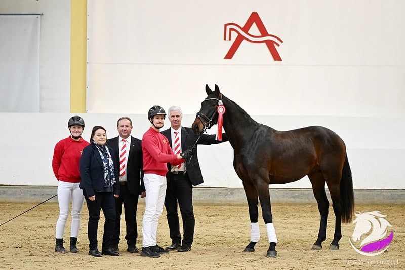 DonJonSon van de Fils was praised at the Young Stallion Day for his dynamic, ground-covering movements with recognizable impulsion and uphill tendency. He received an 8.5 for both trot and canter! He is a son of the Oldenburg premium stallion Diamond First PrH, who was victorious in international dressage competitions under Simone Pearce. The dam Ariadne van der Fils combines the lines of the WBFSH ranking leader Glock's Johnson TN N.O.P. with the proven AWÖ Grand Prix stallion Lux As. Crelido, by Calido, who is successful in the advanced class under Karin Pichler, also comes from the same line. If you have any questions, please contact us by telephone on +43 664 144 90 11