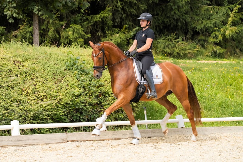 Dieser 5-jährige Wallach mit einer Größe von ca. 1,69 m vereint Ausstrahlung und Persönlichkeit. Seine erstklassige Abstammung – Desperados x Bailamos Biolley x His Highness – spiegelt sich in seinen eleganten Bewegungen wider. Bereits als 3-Jähriger hat Dandelion bei der AWÖ-Körung alle Augen auf sich gezogen, die Richter von sich begeistert – und wurde gekört. Sowohl als 3- als auch als 4-Jähriger wurde er als Wallach erfolgreich bei Materialprüfungen vorgestellt. Dort erhielt er überragende Noten: Trab 8,5, Schritt 8,0 und Rittigkeit 8,3. Aber Dandelion ist nicht nur ein echter Hingucker, sondern auch ein absolut freundlicher, zuverlässiger Partner mit einem tollen Charakter – ein echter Schmuser! Wer also einen Sportpartner mit Traum-Charakter sucht, ist bei ihm genau richtig. Er eignet sich sowohl für ambitionierte Amateure als auch für Profis – ein Pferd mit Zukunft, das Charme und Talent vereint. Dandelion ist bereit, mit seinem neuen Reiter durchzustarten und im Viereck zu glänzen. Direkt vom Züchter – Standort: Graz – Preis auf Anfrage! Für weitere Informationen und zur Terminvereinbarung für einen Proberitt kontaktiert uns gerne telefonisch unter: +436642730721