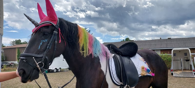 Wunderschöne Barockpinto-Stute mit Turniererfahrung Zum Verkauf steht eine fast 10-jährige Barockpinto-Stute mit beeindruckender schwarz-weißer Scheckung und barockem Exterieur. Sie vereint Ausstrahlung, Leistungsbereitschaft und Vielseitigkeit in einem Pferd. Abstammend von einem Friesenvater und einer Tinkermutter bringt sie sowohl Eleganz als auch Nervenstärke und Rittigkeit mit. Sie ist vielseitig ausgebildet und überzeugt sowohl in der Dressur als auch im Springen. Zudem beherrscht sie verschiedene Zirkuslektionen und zeigt sich stets lernwillig und motiviert. Turniererfahrung ist vorhanden – unter anderem erreichte sie den 1. Platz beim Outriders Cup 2025. Aktuell steht sie laufend im Training und wird weiter gefördert. Besonders hervorzuheben sind: Dressurausbildung Springerfahrung Vielseitigkeit Zirkuslektionen verladefromm turniererfahren menschenbezogen und leistungsbereit Eine talentierte, charakterstarke Stute für ambitionierte Freizeitreiter oder Turnierreiter, die ein besonderes Pferd mit Ausstrahlung suchen.