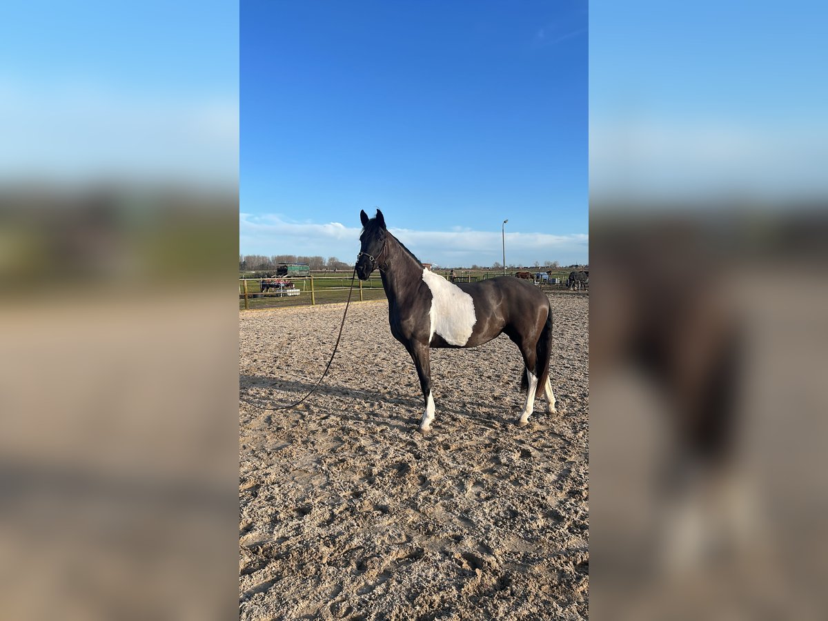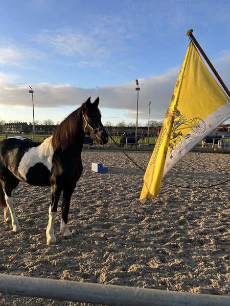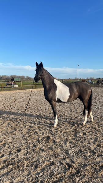 Mooie 3-jarige Barock Pinto merrie van 1.62 cm groot. Goed sportpaard of fokmerrie Super karakter, koel in het hoofd, niet snel bang en onder de indruk. Gouden karakter. Mooie gangen. Pakt grondwerk, longeren etc goed op.