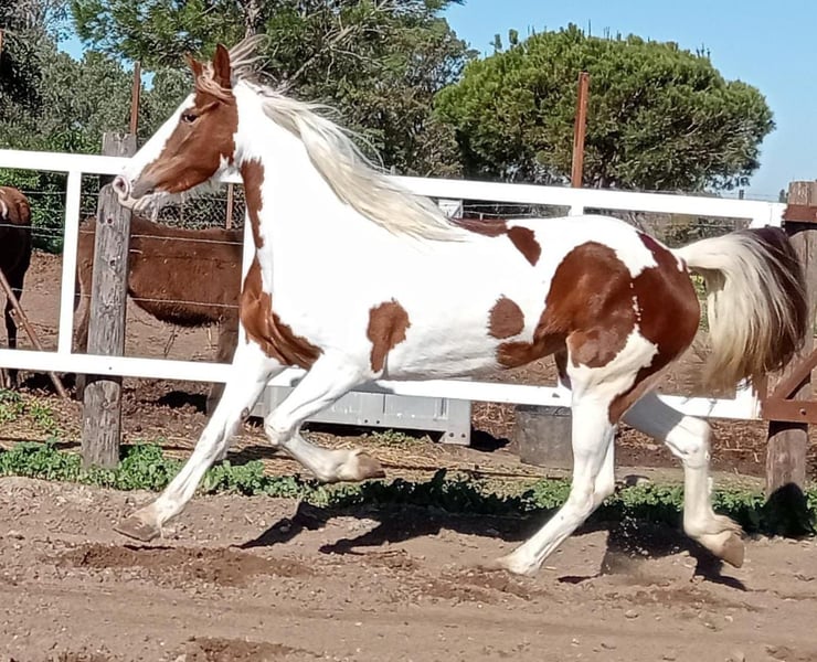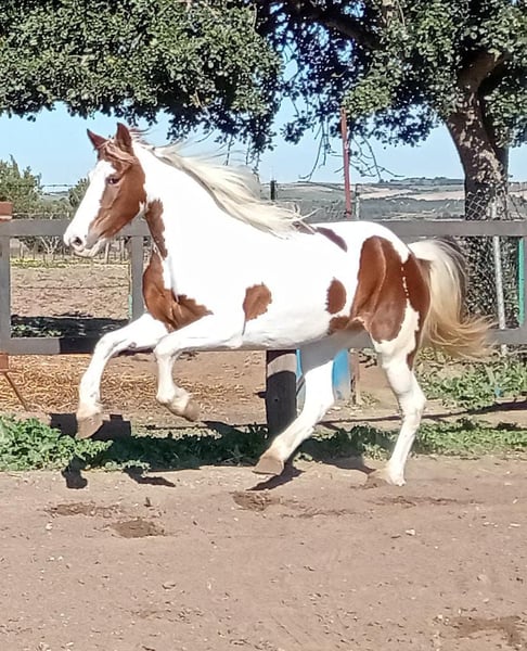 AVALUNA DE FINCA BARROCO, BAROCKPINTA This beautiful lady is the result of a targeted breeding of my URBAROCKPINTOS NIKO II ON NIKO I. She is 71% Friesian with a touch of Spanish blood at 29%. Born on May 8, 2020, she is currently 1.58/1.59, still fully growing and developing. Her father is the impressive ALEJANDRO DE FINCA BARROCO, 1.73, BAROCKPINTA, by ALBANO DE FINCA BARROCO (ALBANO VON SUSENBURGER) by NIKO I. AVALUNA is well started under saddle. She can either continue her training or be exported in the short term. In handling, she is naturally a gem, born here with me. We travel twice a month with transports arranged by me. Contact me on WhatsApp at 0034 670 097 903 Yours, Carmen