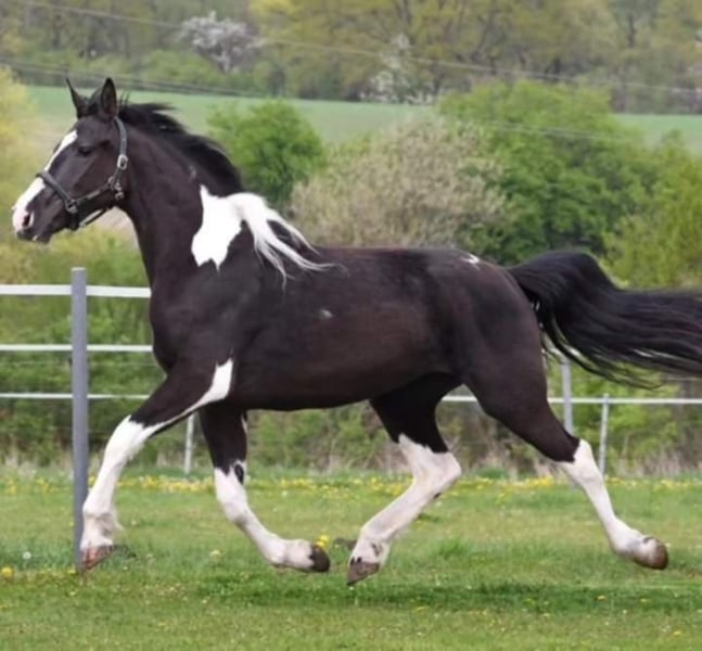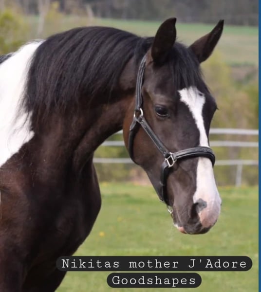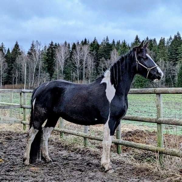 She is big, beautiful and gentle mare. I started her myself in riding- lots of groundwork according to Academic Art of Riding, horsemanship and liberty, I did riding in really slow and gentle so the spine can develop and fuse properly. She is super gentle, I have ridden her a lot in the forest, alone and with other horses. I have used her in kids lessons, she has really impressive canter and trot , she has also jumped with kids a bit. She can do some liberty and is people oriented. She can do in groundwork quarters in, shoulder in, halfpass. No biting, kicking bad behaviour. Trailerloads and travels like a pro alone and in company. Can be alone in box or separate paddock, she does not cry after other horses, not herdbound. She is a leadingmare in my herd. She has had 3 foals, all have been healthy, easy delivery (I have a birth monitor, so I have been there all the times). She is pregnant at the moment from Latvian dressage stallion Altair (from Aromats) Due date is 22.06.2026 She has lived outside with shelter possibility all year round. Regulary trimmed, dewormed, vaccinated, loved and cuddled. Her ears are a bit sensitive- when bridling, you need to be careful not to ´pull´ her ears. She preferres riding in cavesson/ bitless. She wears a bit, but as I see she loves bitless more, I/ and my students have ridden her in cavesson as I don't need a bit myself. She is not officially measured, we measured her at home without correct measuring stick. Her both parents are free of dwarf and hydrocephalus. You can find more pics/videos from our Instagram page barockpinto_estonia Her first foal Nikita https://www.instagram.com/p/C1TvfnOts1p/ Her second foal Oscar https://www.instagram.com/p/DCXYwhUt2Me/ Her third foal Lily https://www.instagram.com/p/DKrD1p7MfEG/ For her foals, she heritages beautiful high neck and strong body. Her halfbrother is licensed breedingstallion LOMME Reasone for selling: I keep her brother (Northern Light from my Instagram account) as my breedingstallion and I cant breed them togeather, so I cant keep her in my breedingprogramme. Real pearl for someone who values slow and groundwork oriented training. She is ready to become your dressage superstar or to bring you many fancy foals.
