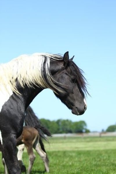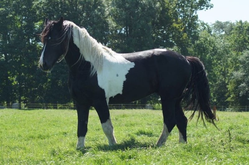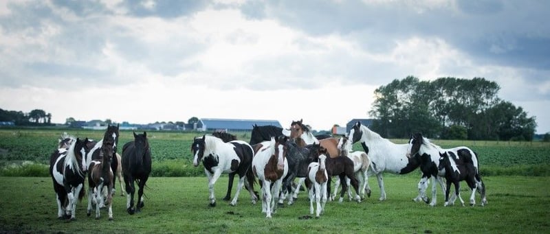 Hermoso potro Pinto Barroco con marcas de color marrón, que creció sano y social en el rebaño con muchos otros potros como compañeros de juego. La madre es una dulce yegua Pinto con una alzada de aprox. 1,55 m, el padre se puede ver en las ultimas fotos y es un dulce semental Pinto Barroco blanco y negro con una alzada de aprox. 1,63 m. Hermoso potro con buena rectitud y bonitos aires. Nació en junio y por lo tanto puede ser destetado. Conoce lo más importante en la vida del caballo: el ABC de la manada. Se nos puede encontrar con nuestros caballos todos los días, pero no los entrenamos, por lo que todos nuestros caballos son todavía completamente verdes. La gran ventaja es que los caballos de la manada están bien socializados, no han tenido malas experiencias y se les puede enseñar todo lo que necesitan saber. Cada año tenemos a la venta unos 40 hermosos potros Pinto Barroco y Frisón de nuestra preciosa yeguada familiar en Holanda. Y también caballos mayores (0-13 años), todos aún verdes y sin entrenar. Sementales y yeguas. Seguro que encuentra el caballo de sus sueños con nosotros, porque siempre tenemos una gran selección. Nuestros caballos crecen de forma natural en grandes manadas, por lo que están muy bien socializados. Aquí llevan una vida de ensueño: en grandes praderas en primavera y verano. En invierno, en grandes establos colectivos. Nuestros caballos se caracterizan por un buen carácter, relajado, fresco, fuerte, bien educado y amable. Puede encontrarnos cerca de Leeuwarden (Frisia, Países Bajos) y nos encantaría conocerle. Contacto: ¡llámenos o envíenos un Whatsapp!