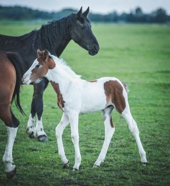 Beautiful brown pinto Baroque Pinto colt, healthy and socially raised in the herd with many other foals as playmates. Mother is a sweet pinto mare of approx. 1.55m tall, father is on the last photos and is a sweet black pinto Baroque Pinto stallion of approx. 1.63m. Beautiful colt with beautiful gaits. He was born in June and can therefore be weaned. He knows the most important thing in horse life: the herd ABC. We can be found with our horses every day but do not train the horses, so all our horses are still completely green. The big advantage is that the horses are well socialized in the herd, have not had any bad experiences and you can teach them everything the way you want it. Every year we have approximately 40 wonderfully beautiful baroque pinto and Friesian foals for sale from our beautiful family stud farm in the Netherlands. And also older horses (0-13 years), all still green and untrained. Stallions and mares. With us you will definitely find your dream horse because we always have a lot of choice. Our horses grow up very naturally in large herds and are therefore very well socialized. Here they lead a dream horse life: in spring and summer in large meadows. In winter in large group stables. Our horses are characterized by a good character, relaxed, cool, strong and sweet and a healthy upbringing. You will find us near Leeuwarden (Friesland, Netherlands) and we would be happy to meet you. Contact: please call or via Whatsapp!