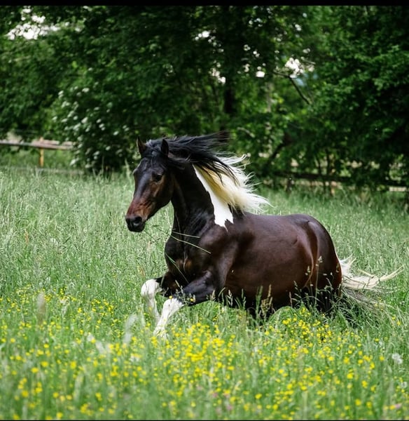 Verkaufe meinen selbstgezogenen Barockpintowallach Ikarus. Er ist am 16.4.2018 bei mir am Hof geboren und hat jetzt ein Stockmaß von ca 1.67cm. Seine Mutter eine PRE Stute Malaya IV und sein Vater Johannes BP09 (Friese/Warmblut). Im Jahr 2018 erreichte er bei der Barockpinto Zuchtschau Österreich die 1ste Premie, 2019 folgte die zweite 1ste Premie und 2021wurde Ikarus erfolgreich zum Deckhengst gekört. Er wurde nach zwei Jahren Deckeinsatz kastriert, danach wurde er als Freizeitpferd geritten, auch ein wenig Freiheitsdressur und kleine Zirkuslektionen beherrscht er. Ikarus ist ein sehr menschenbezogenes und sensibles Pferd, daher braucht er jemanden mit Pferdeerfahrung, Geduld, Ruhe und fairen Umgang. Er ist kein Anfängerpferd!!! Hufschmied und Hänger fahren stellen kein Problem für ihn dar. Ikarus ist fein zu reiten, und durch diese tolle Anparrung verfügt er über schöne Gänge und auch sein Körperbau ist sehr harmonisch. Vor ca. 3 Jahren wurde Ikarus als leichter Allergiker eingestuft, er lebt bei mir im Offenstall mit seinem Norikerfreund, und im Sommer auf Weiden oder Almen. Seit 1 1/2 Jahren merkt man von seiner Allergie sehr wenig, bis gar nicvht mehr. Also wer ein Pferd mit Fokus auf Exterieur, Bewegung und Charakter sucht, ist bei diesem Prachtkerl genau richtig.