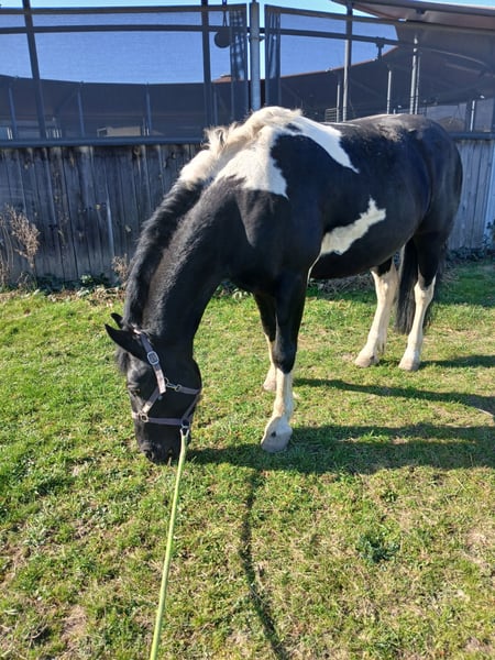 8 jähriger Wallach Typ Barockpinto mit italienischem Pass. Kennt Offenstall und (Paddock-)Box. Geritten in den Grundgangarten (Halle, Platz, Gelände), Doppellonge, Bodenarbeit, wurde auch schon gefahren (nicht bei uns). Teilweise unsicher, aber gut zu überzeugen bzw. händeln - allerdings nur für erfahrene Pferdemenschen. Regelmäßig geimpft & Physio, Zähne kontrolliert, Sattel gecheckt (Englisch und Western) Lässt sich nur mit viel Ruhe satteln, hat Angst. War letztes Jahr für 6 Monate in Beritt, dort hat er das Verhalten nicht gezeigt. Aufsteigen und Reiten unauffällig.