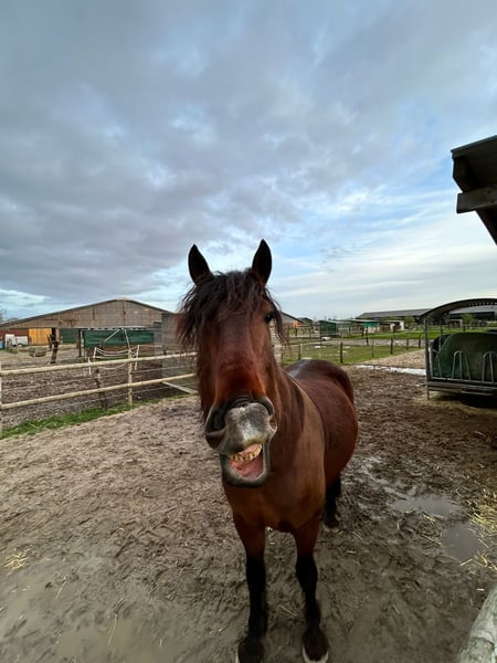 Zum Verkauf (oder zur Reitbeteiligung) steht mein 8-jähriger Barockpinto-Mix Wallach „Miro“. Miro hat ein Stockmaß von ca. 175 cm und wiegt etwa 700 kg. Er ist freizeitmäßig western geritten und überzeugt vor allem durch seinen sehr braven und unkomplizierten Charakter. Er ist geländesicher und geht auch alleine entspannt ins Gelände. Mit entsprechender Vertrauensbasis lässt er sich sogar mit Halsring reiten. Im täglichen Umgang ist Miro sehr menschenbezogen, freundlich und absolut brav. Er ist verladefromm, unkompliziert im Handling und insgesamt ein sehr angenehmer Partner. Durch eine schwere Knie-OP meinerseits wurde er in letzter Zeit leider nicht regelmäßig geritten, weshalb ich mir für ihn wieder mehr Beschäftigung wünsche. Besonderheiten / Infos: • 8 Jahre • Barockpinto-Mix • ca. 175 cm Stockmaß • ca. 700 kg Gewicht • freizeitmäßig western geritten • geländesicher (auch alleine) • Halsringreiten möglich • sehr lieb im Umgang • verladefromm • barhuf (keine Eisen) Miro steht aktuell in einem Wallachverband im Offenstall und ist sehr sozial mit anderen Pferden. Er kennt keine Boxenhaltung, daher kommt für mich ausschließlich Offenstallhaltung in Frage. Ehrlichkeitshalber: Wenn er Richtung Wiese geführt wird, möchte er manchmal etwas schneller dorthin – deshalb wird er aktuell mit Trense zur Wiese geführt. 📍 Standort: Mönchengladbach 💰 Preis: 10.000 € Alternativ Reitbeteiligung: 100 € monatlich (3x pro Woche) Mir ist wichtig, dass Miro in erfahrene, liebevolle Hände kommt. Bei ernsthaftem Interesse freue ich mich über eine Nachricht.