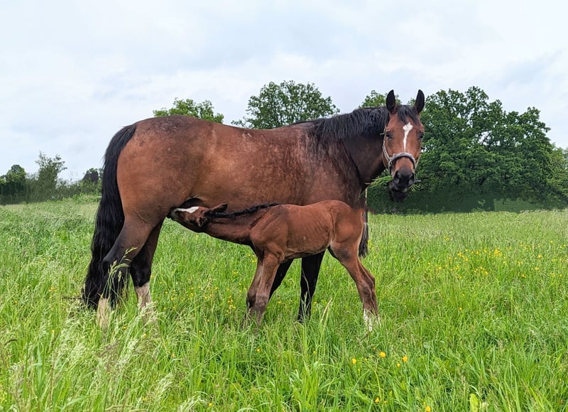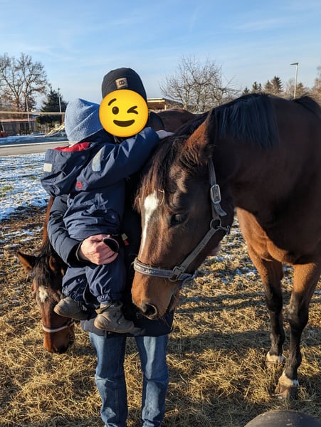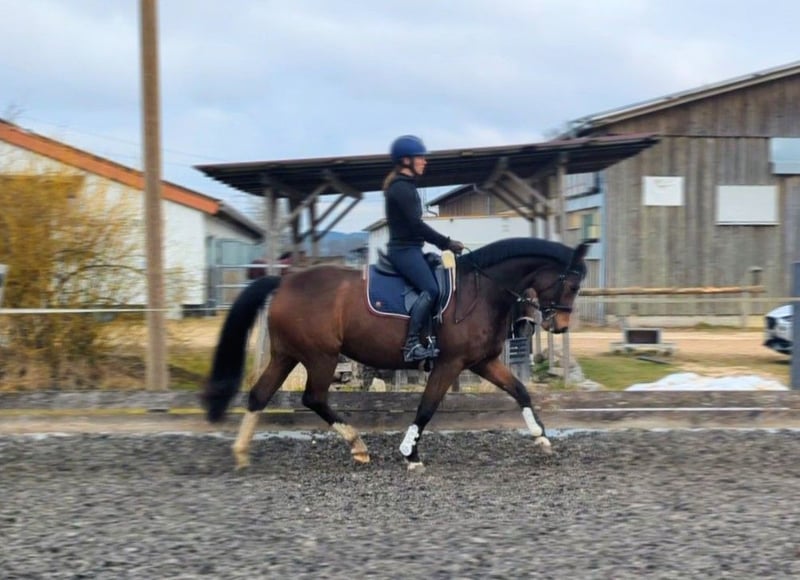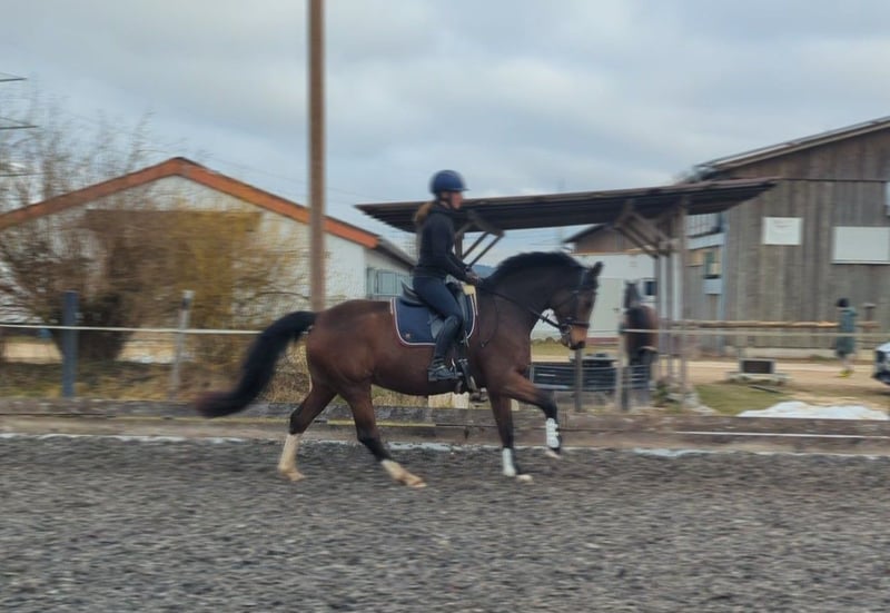 Zum Verkauf steht unsere wunderschöne, 13-jährige Stute Gladdys (Abstammung: Foundation x Delacroix Rose). Gladdys war viele Jahre erfolgreich im Zuchteinsatz und hat mehrere sehr typvolle, qualitativ hochwertige Fohlen gebracht. Ein inzwischen 5 jähriger Sohn kann vor Ort gerne mit besichtigt werden. Gladdys wurde 4-jährig angeritten und anschließend bewusst in der Zucht eingesetzt. Vor allem auf Grund ihrer reiterlichen Qualität in Verbindung mit ihrem einwandfreiem Charakter, ihrem absolut korrekten Körperbau und der daraus resultierenden Gesundheit. Seit ca. einem halben Jahr ist Gladdys bei uns im einem Pensionsstall eingestallt. Sie ist eine rittige, feinfühlige Stute mit genügend Vorwärtsdrang. Dabei ist sie nicht guckig oder schreckhaft, geht leicht an den Zügel, ist schön zu sitzen und verfügt über drei überdurchschnittlich gute Grundgangarten. Da sie reiterlich noch nicht viel Routine sammeln konnte, wünscht sie sich einen Reiter mit sicherem Sitz, Geduld und Feingefühl, der Freude daran hat, gemeinsam mit ihr weiter zu lernen und sie weiter auszubilden. Der Vollständigkeit halber sei erwähnt, dass Gladdys – ihrem sensiblen Wesen entsprechend – auch einmal einen kleinen Satz oder einen kleinen Bocksprung zeigen kann, oder auch am Bein mal zickig reagiert. Dies ist nie bösartig und für uns problemlos kontrollierbar, sollte aber bei der Suche nach dem passenden Reiter berücksichtigt werden. Gladdys ist top gesund, hat keine Vorerkrankungen, super Hufe, klare Beine, keine Allergien oder sonstige Unverträglichkeiten. Sie ist ein toller Allrounder: -Geht gerne im Schritt, Trab und Galopp ins Gelände, auf dem Platz, oder in der Reithalle. -Auch in fremder Umgebung lässt sie sich genauso reiten wie zu Hause -auch einige kleine Sprünge haben wir bereits mit ihr gemacht, wobei sie eine tolle Übersicht und Körpergefühl gezeigt hat. -Stangenarbeit, Boden- oder Handarbeit und Gelassenheitstraining machen ihr große Freude. -Außerdem ist sie verladefromm und brav beim Hufschmied, oder Impfen. - sie ist charakterlich so zuverlässig und ehrlich, dass unser 3 jähriger Sohn regelmäßig mit Longiergurt auf ihr reitet und auch an der Hand traben kann. Im Stall ist sie ein sehr liebes, verschmustes Pferd, ausgesprochen menschenbezogen, anhänglich und genießt die Zeit mit „ihrem“ Menschen. Eine besondere Stute die uns sehr am Herzen liegt und für die wir einen einfühlsamen, liebevollen Reiter suchen. Bei ernsthaftem Interesse freuen wir uns über eine Kontaktaufnahme unter 0176 22278087