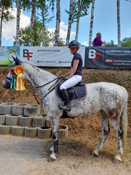 🌟 Traumstute sucht 5-Sterne-Zuhause 🌟 Unsere wundervolle Gebylain sucht ein liebevolles, förderndes Zuhause, in dem sie sowohl Sportpartnerin als auch Herzenspferd sein darf. Geby stammt aus eigener Zucht – wir haben sie mit viel Herzblut selbst aufgezogen und ausgebildet. Schon ihre Mutter haben wir erfolgreich bis zur Klasse S im Springsport vorgestellt. Entsprechend bringt Geby beste Anlagen, eine solide Ausbildung und ein ehrliches, vertrauensvolles Wesen mit. Geby ist eine ideale Partnerin für Mädchen oder Frauen und eignet sich perfekt für den Umstieg vom Pony aufs Großpferd. Sie hat genügend Go, ist vorsichtig, immer ehrlich am Sprung und gibt ihrem Reiter ein sicheres Gefühl. Im Parcours zeigt sie sich mit viel Dynamik, Übersicht und toller Technik, möchte immer auf die andere Seite und verzeiht auch mal kleine Reiterfehler. Geby ist hat mehrfach M* gewonnen und ist M** platziert – sie ist motiviert, lernwillig und immer mit Freude und Ehrgeiz bei der Sache. Zahlreiche Videos finden Sie auch auf Rimondo unter dem Pferdenamen Gebylain. Wir wünschen uns für sie ein Zuhause, in dem sie rundum umsorgt wird, geliebt, gefördert und auch einfach mal Pferd sein darf. Geby wird nur in allerbeste Hände abgegeben. Ein Probereiten ist jederzeit möglich (30 € Gebühr, die beim Kauf selbstverständlich verrechnet wird). ✨ Bei ernsthaftem Interesse freuen wir uns Sie kennenzulernen. ✨