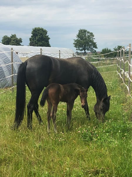 ✨ Charming Broodmare Seeking a New Home ✨ Our wonderful Hanni (13 years old, approximately 16.1 hh) is a lovable and characterful mare who has already given birth to four stunning, dressage-bred foals. She has always fulfilled her maternal role with dedication and impresses with her reliability in breeding. 🐴 What makes Hanni special: - Lives harmoniously within a herd but is also accustomed to stall confinement - Exemplary in farrier and veterinary visits – completely uncomplicated - Enjoys every attention, loves being groomed and pampered - Likes groundwork and lunging exercises - Passes on her quality and gentle nature to her offspring (see photos) Due to an old injury from her foal days, Hanni is not suitable for riding, but this does not prevent her from being an excellent partner for breeding or groundwork. 💛 We are looking for a loving home where Hanni will continue to be appreciated and cared for. Priority over price!