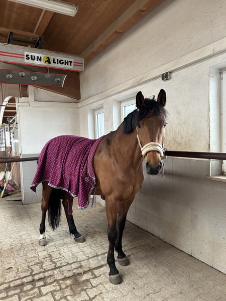 Ich biete meine 16 Jährige, wunderschöne bayerisch gezogene Stute zum Verkauf. Ich suche tolles neues zu Hause /Endplatz da ich Auswandern möchte. (Platz vor Preis)!! Miss ist eine sehr motivierte und arbeitswillige Stute. Dressur Arbeit macht mit ihr viel Spaß, da sie leicht in der Hand ist und sowohl auf Gewicht als auch auf den Schenkel sehr fein reagiert. Auch ohne Sattel ist sie durch ihre bequemen Gangarten toll zu reiten. Spring Talent ist auf jeden Fall vorhanden (früher auch viel Turnier geritten bis M Springen). Altersbedingt möchte ich Sie nicht für Reiter im Turniersport abgeben. (Meine aktuelle Reitbeteiligung hat auf ihr ein paar kleine Reitabzeichen gemacht und ist ein paar kleine Turnierrunden gestartet, das wäre selbstverständlich kein Problem) Kleine Runden im Gelände sind alleine und mit dem richtigen Partner ist auch alles andere möglich. Sie ist immer gut händelbar. Sie kennt auch Wasser , da es in unserem Gelände auch einen kleinen Bach gibt in den man reiten kann. Selbstverständlich kennt sie auch die Arbeit an der Longe. Schreib mir bei Interesse einfach eine pn oder über WhatsApp +4917632589270