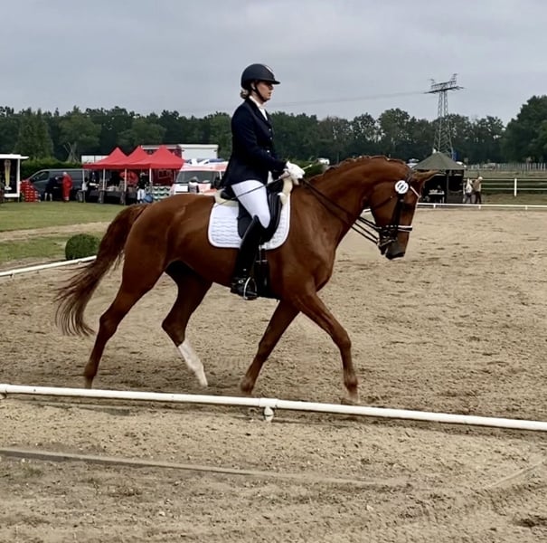 Schweren Herzens suche ich für meine Hilde(früher war sie auch mal wild😁) ein Traumzuhause mit Familienanschluss. Eigentlich heißt sie L’ Amour und war mit mir bis M-Dressur erfolgreich! Sie ist kinderleicht zu reiten und brav, allerdings nicht für reine Anfänger geeignet, da sie schon mal testet… Sie liebt ihre Bezugspersonen und ist sehr verkuschelt. Aufgrund von mehreren Befunden ist sie nicht mehr sportlich einsetzbar, aber durchaus noch als Lehrpferd und Freizeitpartner. Auch im Gelände ist sie super brav. Sie hatte bisher drei Fohlen, die alle super schick und bewegungsstark sind. Die fünfjährige befindet sich auf dem Weg ins große Viereck. Hilde sollte nicht komplett im Offenstall oder nur auf 24h-Koppel stehen, da sie zumindest nachts ein Stubenhocker ist. Sie braucht immer die gleichen Abläufe, sonst nimmt sie gleich Gewicht ab und bekommt Magenprobleme. Ansonsten ist sie sehr sozial und natürlich Schmiede- und Verlade-Profi! Hilde wird nur in die allerbesten Hände abgegeben!!! Ich habe leider keine Zeit für zwei Pferde und für die Rente ist sie noch zu jung. Bei Interesse oder weiteren Fragen stehe ich gerne zur Verfügung. Besichtigung und Probereiten(30€) nach Vereinbarung möglich.