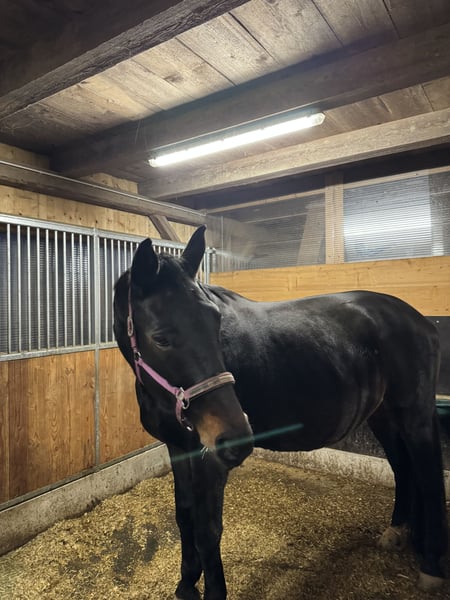 **Verkaufsanzeige: Bayerisches Warmblut – elegante Rappstute für die Freizeit** Zum Verkauf steht eine beeindruckende Bayerische Warmblutstute, geboren im Jahr 2007. Mit ihrem edlen Rappen-Fell und einer Größe von 179 cm ist sie sowohl optisch als auch vom Format her ein echter Blickfang. Diese vielseitige Stute ist perfekt für den Freizeitbereich geeignet und begeistert durch ihre ausgeglichene und zuverlässige Art. Sie ist gut geritten und besitzt eine angenehme Grundausbildung, die sie zu einem angenehmen Begleiter für entspannte Ausritte und Freizeitaktivitäten macht. Die Stute ist regelmäßig geimpft. Flora zeigt sich in der Herde sozial und ist unkompliziert im Umgang. Ich gebe sie schweren Herzens ab, da sie sich wegen ihres großen Rahmens nicht regelmäßig in der Box ablegt. Sie fühlt sich im Offenstall/Paddocktrail am wohlsten. Sie wird weit unter Wert verkauft, da sie an dem rechten Hinterbein einen Lymphschaden hat, der mit permanenter Bandagierung absolut handelbar ist. Braucht keine Medikamente. Sie befindet sich aktuell wieder im Aufbau und wird deshalb als bedingt reitbarer Beisteller verkauft. Bei Interesse oder weiteren Fragen stehe ich Ihnen gern zur Verfügung. Vereinbaren Sie gerne einen Termin für eine Besichtigung.