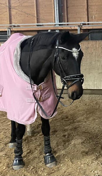 Wir suchen ein neues liebevolles Zuhause für unsere "Frieda". Frieda ist trotz ihres Alters topfit und will beschäftigt werden. Sie läuft in der Dressur bis ca A Niveau und auch schon einzelne L Lektionen kann sie auch. Springen macht ihr auch große Freude, egal ob Trabstangen, Cavaletti oder Sprung. Ins Gelände geht sie auch brav und zuverlässig. Im täglichen Umgang ist sie brav erzogen und kennt keine Unarten. Da Friede schon einmal im Schulbetrieb gelaufen ist (1 Jahr) ist sie es auch gewohnt mit Ausbindern mit Anfängern zu laufen. Unsere Tochter hat mit ihr das Reiten gelernt und innerhalb von 4 Jahren mit Frieda bis L Niveau erlernt. Wir wünschen uns ein liebevolles Zuhause für sie. Bei uns steht sie unter Tags in einer kleinen gemischten Herde und Nachts in der Box. Reine Boxengaltung, bitte nur mit täglichen Auslauf. Frieda gibt ihrem Reiter immer ein gutes und sicheres Gefühl, trotz ihres Vorwärtsdranges. Bei uns war sie in den 4 Jahren keinen Tag krank. Bei Interesse kann ein Termin zum Kennenlernen und Probereiten ausgemacht werden. Hierfür nehmen wir uns Zeit und verlangen daher eine Gebühr von 45€, welche beim Kauf verrechnet werden. Bei Bedarf kann ein VS Sattel und ein Dressursattel miterworben werden.
