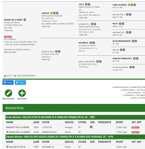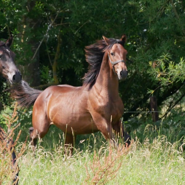 Ma jument Quintina, qui a obtenu jusqu'à S** en compétition, recherche un nouveau foyer. Née en 2006, elle mesure environ 1,68 m. Son père est Quidams Rubin, et sa mère est une jument d'Argentinus - Francisco II (voir pedigree en images). Sa mère est la sœur de 160 chevaux performants, Pandur 292 et Grancesco (également approuvé). Elle est en bonne forme et a été récemment utilisée comme jument de reproduction. Elle n'a ni été malade ni blessée lors de sa carrière sportive. Elle est montable, actuellement uniquement monté occasionnellement pour des sorties en loisir. Elle connaît les balades à l’extérieur ainsi que le travail en manège. Quintina est toujours calme, amicale et facile à monter, aussi bien au box qu’en main. La jument n’est pas pleine et provient d’un élevage très performant. Elle pourrait donc éventuellement encore avoir 1 ou 2 poulains.
