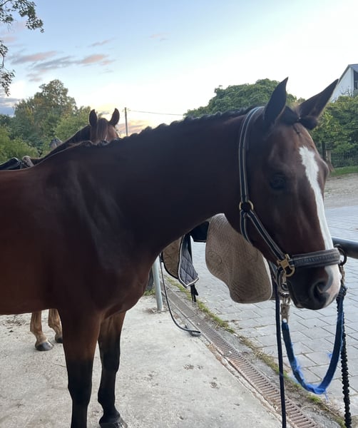 Chloe ist ein echter Goldschatz! Sie ist 4 jährig und stammt ab von Con Chello x Argentinus und hat ein Stockmaß von 1.60m. Wir haben Chloe selbst gezüchtet und waren mit ihrer Mutter bis S* platziert. Wir haben Chloe dieses Jahr selbst schonend angeritten und im September zweimal am Turnier (Einlaufprüfung 80cm null gelaufen) vorgestellt. Chloe macht jeden Tag Spaß, ist absolut unkompliziert und zuckersüß. Momentan steht sie im Offenstall in einer großen Herde. Hier ist sie sehr verträglich :). TÜV von diesem Jahr vorhanden. Videos vom Turnier, Freispringen und Training verschicke ich gerne auf Anfrage. Preis: 20.000€ Bei Interesse bitte anrufen oder WhatsApp: 017662141795