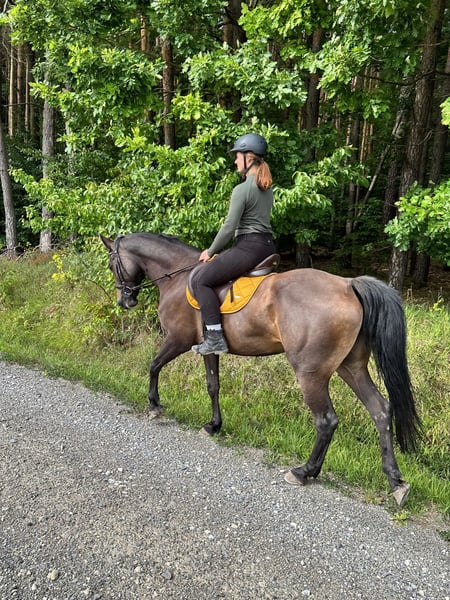 Du suchst eine verschmuste Stute, die darauf wartet anzukommen? Dann ist Leila genau richtig. Ich darf seit 2 Jahren mit ihr arbeiten und bin sehr dankbar für diese Zeit. Egal ob Gelände, Platz - geritten oder vom Boden ist sie ein Engel. Leila ist das Perfekte Familienpferd. Sie braucht trotzdem eine sichere Bezugsperson, dann macht sie gerne alles ruhig mit. Beim verladen gibt es leider noch Probleme. Wir beginnen gerade wieder das Verladetraining. Leila lässt in ihrer Rosse gern Wallache aufspringen und müsste in eine reine Stutenherde. Leider kann ich ihr das nicht bieten. Dadurch gibt es zu Rossezeiten immer Unruhe und ich sorge mich langfristig auch um ihre Gesundheit. Deswegen wünsche ich ihr ein absolut tolles neues Zuhause. Ich habe sie Im letzten Winter mit Trainern ganz langsan angeritten. Aktuell läuft sie im Trab und Schritt schon sehr losgelassen und in Anlehnung. Im Galopp müssen noch mehr Grundlagen gelegt werden. Sie lässt sich auch gebisslos problemlos im Gelände reiten und geht alleine und in der Gruppe. Neue Menschen werden meistens einmal gut getestet, bevor sie ihr Herz verschenkt. Ich freue mich über ernstgemeinte Angebote. Aktuell steht sie in einer kleinen Herde im offenstall. Bisher ging es ihr am besten, wenn sie nachts in die Box kam.