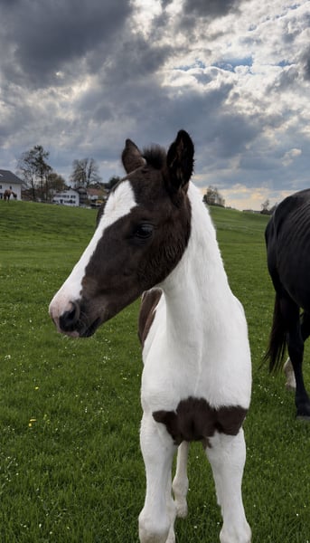 Wunderschönes Stutfohlen zu verkaufen – schwarz-weiß gescheckt mit Top-Abstammung Zum Verkauf steht ein außergewöhnlich typvolles Stutfohlen in auffälliger schwarz-weißer Scheckung. Die junge Dame überzeugt nicht nur durch ihre besondere Optik, sondern auch durch ihre hervorragende Abstammung, die keine Wünsche offenlässt. Bereits jetzt zeigt sie sich mit sehr guten Grundgangarten. Sie ist korrekt gebaut, aufmerksam und menschenbezogen – beste Voraussetzungen für eine erfolgreiche Zukunft im Sport oder in der Zucht. Aber natürlich ist sie genauso auch als Freizeitpferd geeignet. Abstammung: Vater: Calep (sportschecke) MutterVater: Delacroix Rose v. Davignon I Ihre Mutter Grandezza ist eine Staatsprämienstute Ein absolutes Highlight für Liebhaber besonderer Pferde! Bei ernsthaftem Interesse freuen wir uns über Ihre Nachricht.