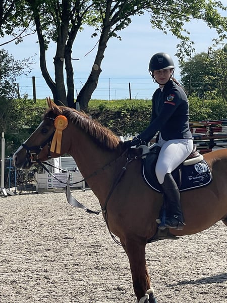 Sunny ist ein hübscher, aufgeweckter Wallach, der Dressurtechnisch auf L/M Niveau (Traversalen, Galopp-Seitengänge funktionieren gut, leichte Pirouettenansätze sind zu erkennen) und im Springen bis L ausgebildet ist. Er arbeitet gern und braucht einen einfühlsamen und konsequenten Reiter und Freund, der Lust hat, sich mit ihm zu beschäftigen und Zeit zu investieren. Diese Zeit habe ich momentan leider nicht, da ich mich im Abistress befinde und voraussichtlich danach studieren werde, das heißt ich werde ihm nicht gerecht werden. Mit anderen Pferden ist er äußerst umgänglich und nicht dominant, kann also sowohl mit Stuten, als auch mit Wallachen gemischt auf der Koppel stehen und genießt die sozialen Kontakte. Er wurde immer abwechslungsreich bewegt (Platz, Halle, Gelände). Leider muss er momentan pausieren aufgrund einer Verletzung vor 5 Monaten. Im Moment befindet er sich im Schrittaufbau und geht 1-1,5h pro Tag Schritt und der Tierarzt ist sehr zufrieden mit der Heilung. Während der ganzen Zeit wurde eine gewissenhafte Therapie durchgeführt und bei der letzten Tierarztkontrolle im November war er auch schon komplett lahmfrei. Sunny sollte trotzdem noch einige Zeit nur Schritt gehen und dann kann das Training langsam wieder aufgebaut werden. Er ist natürlich brav beim Hufschmied, Verladen ist auch kein Problem und er war schon oft auf Turnieren oder Lehrgängen unterwegs. Dass Impfungen und Wurmkuren regelmäßig durchgeführt wurden, ist klar. Wichtig: er kann zur Zeit nicht probegeritten werden. Reitvideos sind aber vorhanden und können auf Nachfrage hin angeschaut werden.