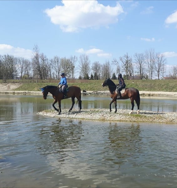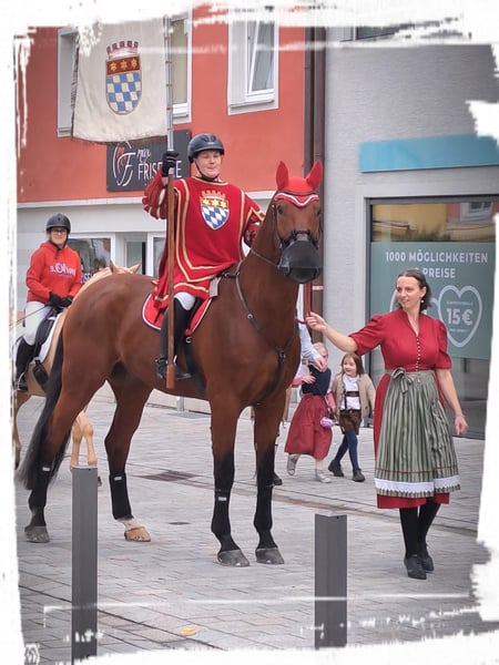 schicker, braver Wallach schweren Herzens nur in absolut gute Hände abzugeben (aus gesundheitlichen Gründen der Reiterin momentan nicht im Training). FranzFerdinand ist eine Seele von Pferd und für jeden Spass zu haben, egal ob für den Freizeit- oder Turnierreiter. Er kennt longieren, Doppellonge, Bodenarbeit, hat auch schon meinen Sohn im Schlitten gezogen, geht ins Wasser, im Springen bis L platziert (er will immer über den Sprung - verweigern kennt er nicht), geht gerne ins Gelände, egal ob alleine oder in der Gruppe, ist Volksfestauszug gegangen. Trotzdem ist er kein reines Anfängerpferd, da er über reichlich Go verfügt und auch mal seine Freude in Form von kleinen Bocksprüngen (nie bösartig) zeigt, kein steigen. Ausserdem braucht er eine konsequente Erziehung, da er weiss, dass er der stärke ist. Schmiede- und verladefromm (aktuell Barhuf), ebenso brav beim Tierarzt. Wurde regelmäßig dem Osteopathen vorgestellt, Zähne wurden regelmäßig kontrolliert und gemacht, sowie geimpft und entwurmt. FranzFerdinand steht bei mir aktuell im Offenstall mit 2 weiteren Wallachen, er ist herdenverträglich, auch mit Ponys, ranghoch. FranzFerdinand ist 15 Jahre alt und 1,80m gross. Hatte 6 jährig am linken Hinterbein eine Sprunggelenksfraktur, diese ist komplett und vollständig ausgeheilt. 8 jährig kam er zu mir und 9 jährig erst in den Sport. Ging nie Aufgrund dieses Befundes lahm. Ich würde mir ein liebevolles Zuhause im Offenstall oder mit viel Weidegang wünschen. Sein Kumpel Fritzi (das Pony auf dem Video, ist auch käuflich zu erwerben) Standort ist 84130. Bitte nur bei ernstem Interesse gerne unter 0151 / 73021003 melden. Das gesamte Zubehör, kann gegen Aufpreis ebenfalls erworben werden (von der Abschwitzdecke bis zum Sattel alles). Preis VB: incl. Zubehör 5999.-€