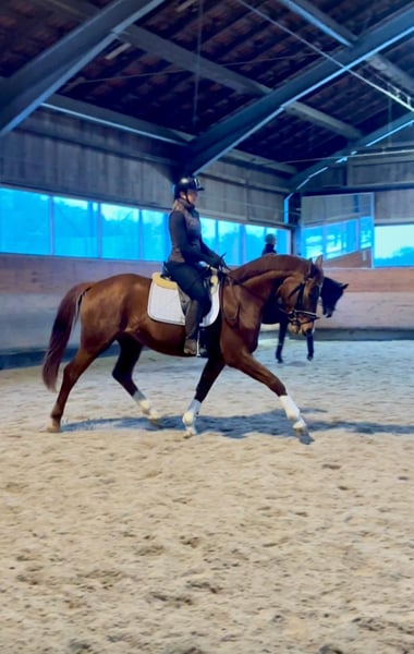 For Sale: Bavarian Warmblood – Elegant Chestnut Gelding We are offering a beautiful Bavarian Warmblood gelding, born in 2022. The young gelding is ideally suited for dressage and already demonstrates significant talent along with a promising basic training. He impresses with his gentle temperament, willingness to learn, and balanced nature. Please feel free to contact me for further information or if you are interested. Viewing and test rides available by appointment.