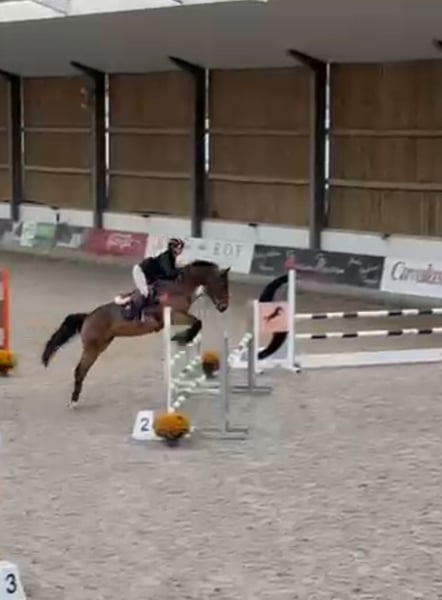 Wunderschöne Sportstute mit einer Schulterhöhe von 1,65 m, 13 Jahre alt, bereit, einem Reiter, der eine leistungsstarke Partnerin mit Chic und einem willigen Geist sucht, Freude zu bereiten. Nach der Geburt eines großartigen Fohlens im letzten Jahr (von Jensson) hat sie das Training schrittweise wieder aufgenommen und zeigt sich bereits auf 1,00 m direkt bereit, mit echtem Willen, es gut zu machen. Sie ist eine reaktionsschnelle Stute mit Präsenz im Sattel und einer schönen Energie, was sie zu einem idealen Partner für einen Reiter macht, der Pferde mit Dynamik liebt. 💥 Sportliche Qualitäten: - Bereits jetzt einsatzbereit auf 1,00 m - Entwicklungspotenzial bis 1,10–1,20 m, sobald sie wieder vollständig im Training ist - Sehr gute Technik, ehrlich und respektvoll - Elegante Bewegungen, natürlicher Gleichgewichtssinn, passt sich leicht dem Rhythmus an 💗 Verhalten & Pflege: - Im Alltag sehr angenehm, leicht bei allen Pflegearbeiten (Hufschmied, Tierarzt, Putzen, Duschen, Transport etc.) - Vielseitig im Gelände, sicher und willig - Sehr gute Mentalität, großzügig und stets bereit, für ihren Reiter zu arbeiten Sie ist perfekt für einen Reiter geeignet, der in Turnieren Fortschritte machen möchte, mit einer Stute, die Erfahrung, Qualität und eine leistungsorientierte Mentalität mitbringt. 📍 Sichtbar in Belgien ℹ️ Transport möglich 💬 Weitere Infos, Videos und Besichtigung auf Anfrage. WhatsApp: 0032479481088