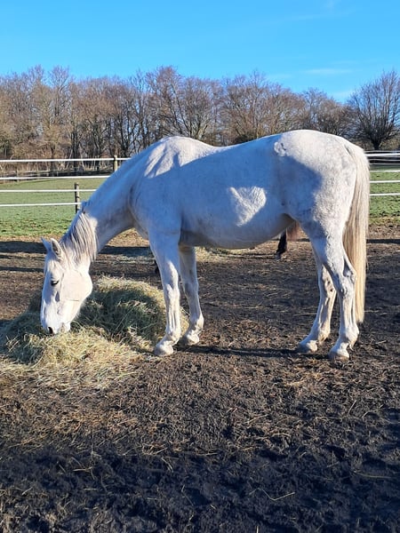 Große Stute, geboren am 14. Februar 2012, 173 cm groß. Ausgebildet 2019, jedoch ausschließlich für die Zucht genutzt. Sehr angenehmes Wesen, äußerst fürsorglich. Ihre Nachkommen: - Palinko du Bois Halleux, M50 (Frankreich) - Qhyra du Bois Halleux, M35 (Deutschland) - Ulhick du Bois Halleux, M10 (Portugal) - Cripsi du Bois Halleux, die jüngste im Jahr 2025 geboren (verkauft nach Deutschland) Malika du Bois Halleux, Tochter von Ironie du Bois Halleux (Elite-Merrie BWP), die unter der Reiterin und Besitzerin Isabelle Gerfer in den Disziplinen M50-55 erfolgreich war. Ironie: - Erste Platzierung in Galhen U25 M50 - Erste Platzierung in Mannheim U25 M50 - 7. Platz in Aachen U25 M50 2018-2019 + zahlreiche weitere gute Ergebnisse in M40/45 Ich suche ein neues Zuhause für Malika. Sie hat noch einige Jahre für die Zucht vor sich. Händler bitten wir, von einer Kontaktaufnahme abzusehen. Grund: Berufsaufgabe