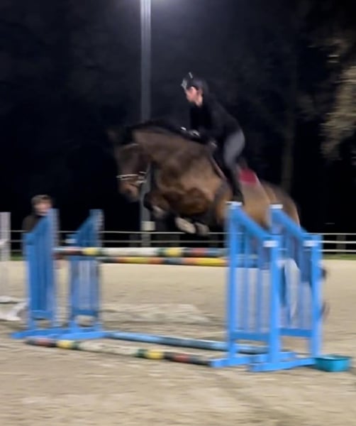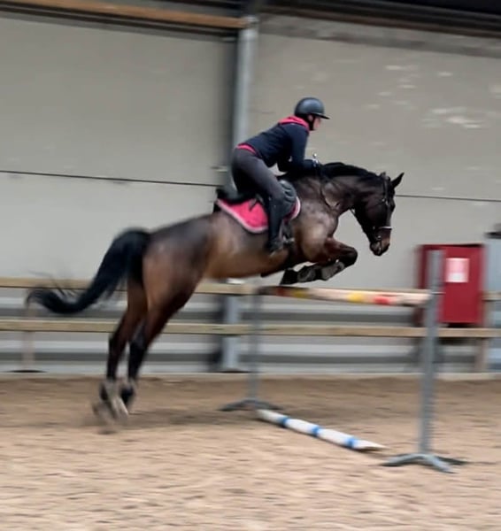 Cette jument agréable donne toujours le meilleur d'elle-même, aussi bien en saut d'obstacles qu'en dressage. Elle a auparavant sauté 1,20 m et est maintenant prête pour les 1 m. En dressage, elle évolue au niveau N1, mais elle maîtrise également la travers, le renvers, le piaffer et les changements de pied volés. En déplacement, elle est aussi agréable à monter qu'à la maison et ne se laisse pas distraire. En promenade, elle est également très douce, aussi bien seule qu'en groupe. Elle charge facilement, aussi bien dans une camionnette que dans un van. Plus d'informations via WhatsApp.