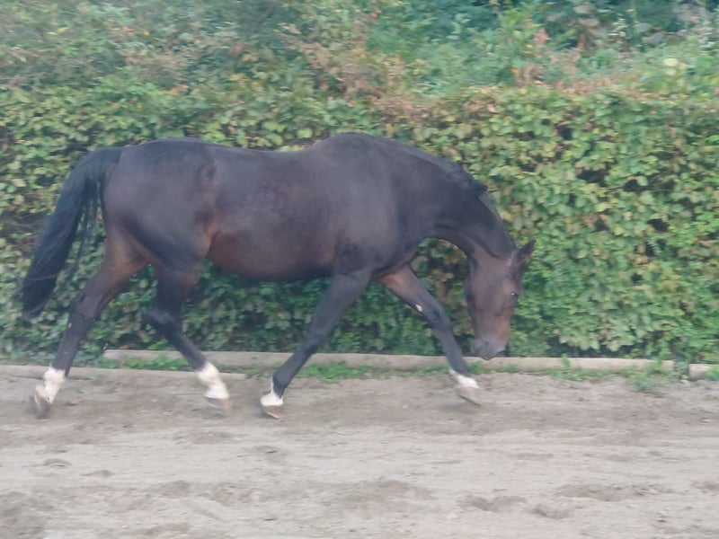 For sale: mare in foal to Lector van de Bisschop, due in early April 2026. Lector van de Bisschop combines top genetics with high-level performance. Sire: Bamako de Muze, uterine brother of Mylord Carthago; dam: Cordula de Laubry, half-brother of Fantomas de Muze. In recent years, he has excelled under the saddle of Koen Vereecke with victories in the GP5* and the Nations Cup in Sopot, the GP4* in Opglabbeek, the GP3* in Knokke, and the Nations Cup in Deauville (double clear). Last year, he achieved a commendable fourth place in the GP5* in Fontainebleau. His offspring seem to possess a lot of quality; just look at horsetelex. In 2023, he produced a young champion horse in Belgium (Libelle Asborne Z) and in the Netherlands (Menoor). His older descendants are already competing in international sports. Examples include Paola vd Bisschop, Popeye vd Bisschop, Looks Good de Liebri Z, Remus de Mariposa, and Romulus de Mariposa. Very good broodmare, foals easily, excellent mother. Powerful mare with blood, can still be ridden for leisure. She received the external label from BWP, provincial champion for conformation and movement at 3 months, 2 years, and 3 years. Very nice gaits, could also produce for dressage. Last photo: grandson at the free jumping competition in Gesves. Small family breeding, reducing the number of horses due to lack of time (children!). Transport possible. Last photo: grandson.