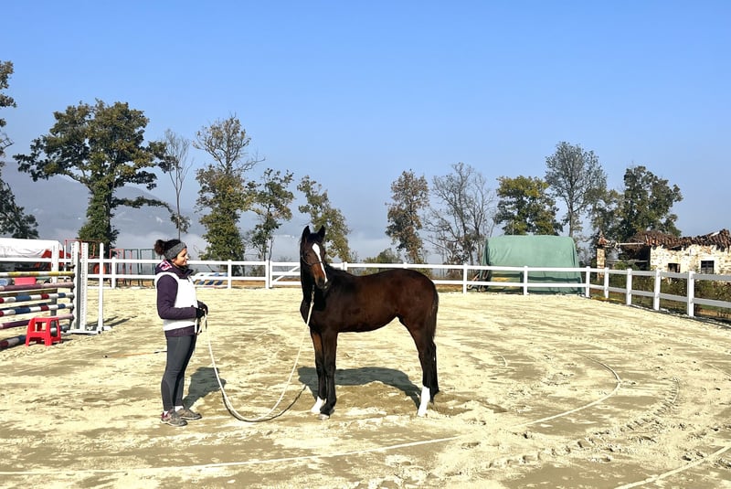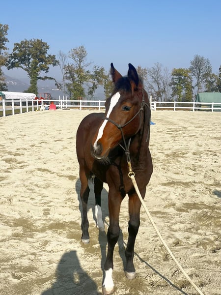 Jeune jument née en 2025, issue de Charthago Blue x Colman x Acorado. Très belle conformation et excellente attitude. Très compétente dans la gestion quotidienne (pieds, pansage, manipulation à la longe). Visible à l'élevage.