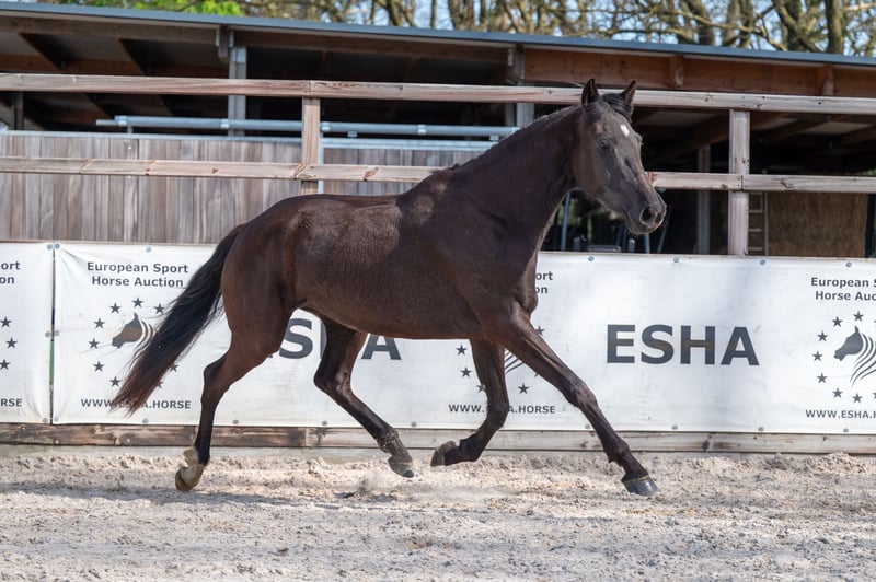 A stunning black mare with excellent conformation and a sporty build. This mare is easy to handle and has a friendly, affectionate nature. We believe she could be a very interesting acquisition for someone who appreciates her true value today and can provide her with a solid further education.