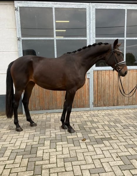 3.5-year-old dark brown mare. Approx. 1.67 m. Glamourdale x Aaron (S*** dressage). BWP Witney has been under saddle for 3 months and is doing well with everything. She is also a very pleasant horse to handle. She has 3 good gaits, with a very good canter. She has no vices in the stable. Very good vet check including back and neck is available. Easy to load. Price expectation: €10,500 negotiable. The horse is located in Kinrooi (B), about 50 km from Aachen and Mönchengladbach.