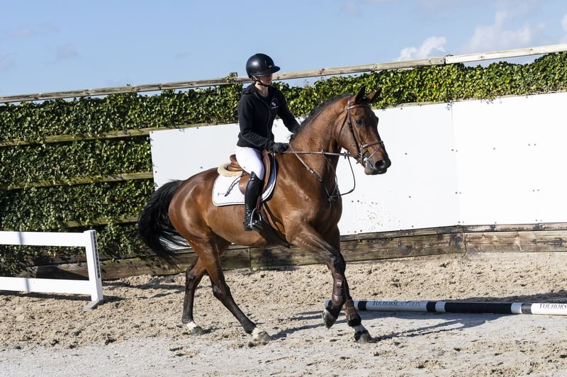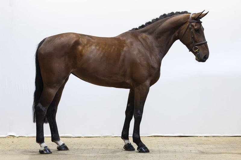 Compact model with a lot of presence, a true Darco. Jumps with a lot of quality, push-off and a good technique. Rideable blood but sharp, with a lot of scope. Has been very well-behaved during backing, but still green and sharp in handling. Big canter and a lot of potential. Not yet ready for courses and less suitable for an amateur. Sire Darco – 1.60m level. Legendary BWP ambassador and one of the most influential sires worldwide. Dam Cassidy DV Z – daughter of Casall (1.60m). Damline Granddam Lanzarote DV – daughter of Emerald van ’t Ruytershof (1.60m). From this line come: Chicago DV Z – 1.30m Colorado DV Z – approved stallion ZANG Further in the line: Gucci DV – 1.50m Heros DV – 1.40m KrisKras DV – 1.60m–1.65m Strong international sport line with scope and sharpness.