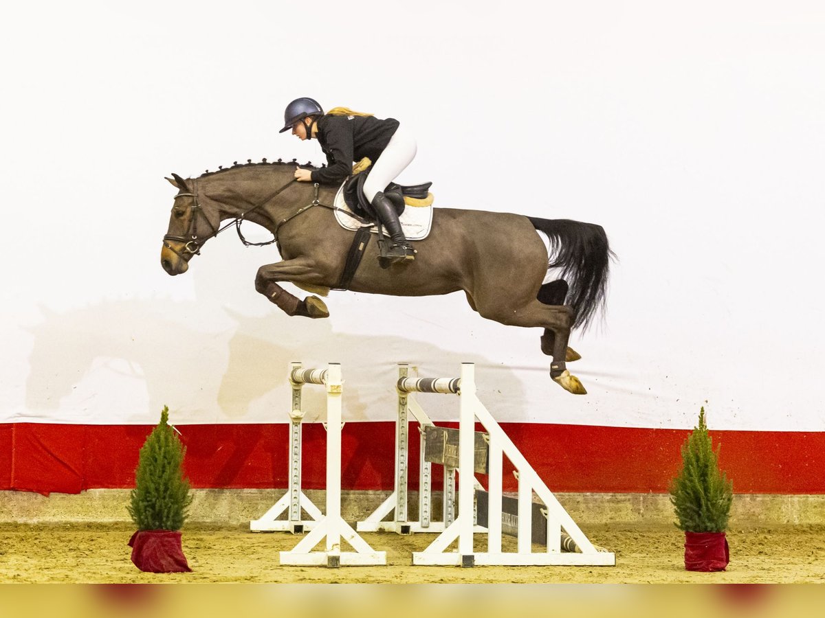 Vienna FG is a beautiful blood mare who will turn five in 2026 and has only just been saddle broken. She already rides very pleasantly and makes a positive impression in daily handling. She has blood, but in a good and workable way, and is very kind and cooperative. Over the jump, her power and good hind-leg technique stand out immediately. She is quick off the ground, shows plenty of scope and jumps with good commitment. Her technique is correct and she jumps with ease. For her age, she is developing remarkably well and already shows clear natural quality. Sire Pegase van ’t Ruytershof, by Comme Il Faut, competed internationally at 1.55 m level, with placings at CSI2* and CSI3* events. Pegase combines the scope and reflexes of Comme Il Faut with the strong Ruytershof damline and is known for passing on blood, mentality and quality. The damline is exceptionally strong and performance oriented. Dam Quinara (by Quidam de Revel) comes from a proven Holsteiner family and produced several sport horses, including Lassergut Balouboy (1.30 m) and Prins Cornet FG (1.35 m international). Granddam K-Tiziana produced the approved stallion Quadrillo (ZfdP, BWP) and sport horses such as Quintino GP (1.40 m) and Quipou de Hus (1.45 m). Further down the line, multiple horses competed at 1.30 m to 1.45 m level, confirming the reliability and sport strength of this family. Vienna FG is a young, recently saddle-broken mare with blood, a strong hind end and plenty of scope. An interesting prospect for the future, both for sport and breeding. This horse was previously auctioned, but as the buyer did not meet his obligations, the payment was never completed. The horse itself is exactly as described. Perhaps it’s no coincidence the previous buyer didn’t pay — this horse was simply meant for you!