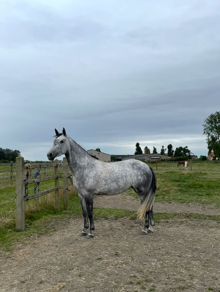 With a heavy heart, I am offering my beloved mare for sale. Tia is a 6-year-old showjumping-bred mare. She has competed in jumping courses up to 100 cm. I am selling Tia as an all-round horse because I have noticed that she enjoys variety the most. She is well-behaved on walks, both alone and in a group. She has been to the beach and forest several times. I believe she would also be suitable for cross-country riding, as she never hesitates at jumps. She would never refuse a fence. She also has a good basic dressage foundation. She can be sold with all her equipment. A fitted jumping saddle (Prestige) can also be included for an additional price. In short: Tia is a lovely horse for a versatile rider who prioritizes fun and enjoyment. You can contact me via WhatsApp or call at +32 468 127 599.