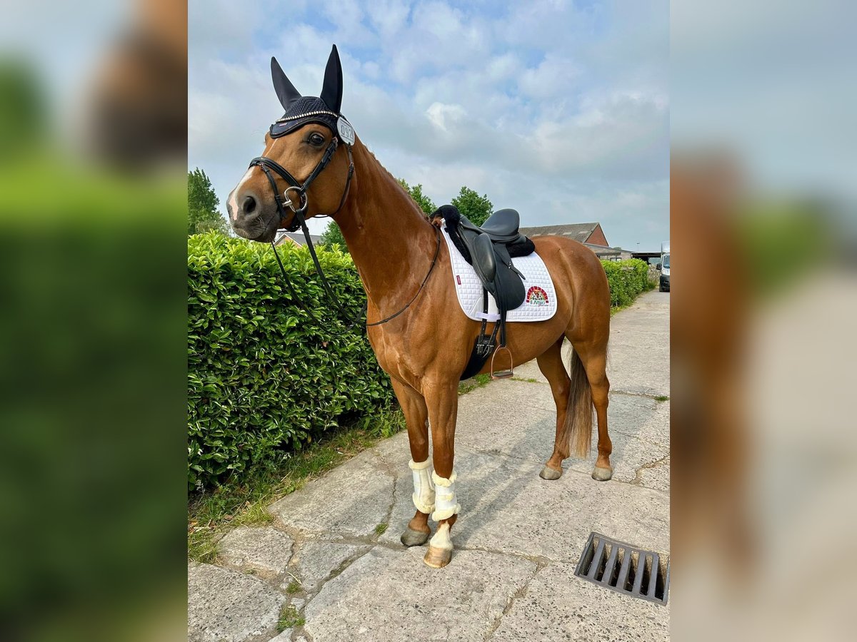Triple is een 7 jarige merrie met afstamming Escamillo x For Romance x Weltmeyer. Ze meet 1m65. Ze is een enorm eerlijk en betrouwbaar paard waar een ervaren, ambitieuze ruiter zo opstapt en wegrijdt. Bij ons heeft ze nooit gebokt of gesteigerd. 🏅Heeft vorige jaar een mooi wedstrijdseizoen achter de rug gehad met enkele prachtige resultaten van scores hoger dan 70%. 🌳Verder geniet ze enorm van wandelingen in het bos en aan het strand. Hierbij is ze ook niet rillig of kijkerig. Wij nemen ze vaak mee als kopman maar ze kan ook perfect vanachter in de groep aansluiten, wat je nodig hebt op die moment. RX foto’s zijn reeds aanwezig zonder bemerkingen (nek, rug en benen) maar herkeuren mag, kosten koper. 📥 Indien je meer informatie wenst over Triple of een afspraak wilt maken om te komen testen, aarzel dan zeker niet om mij te contacteren.