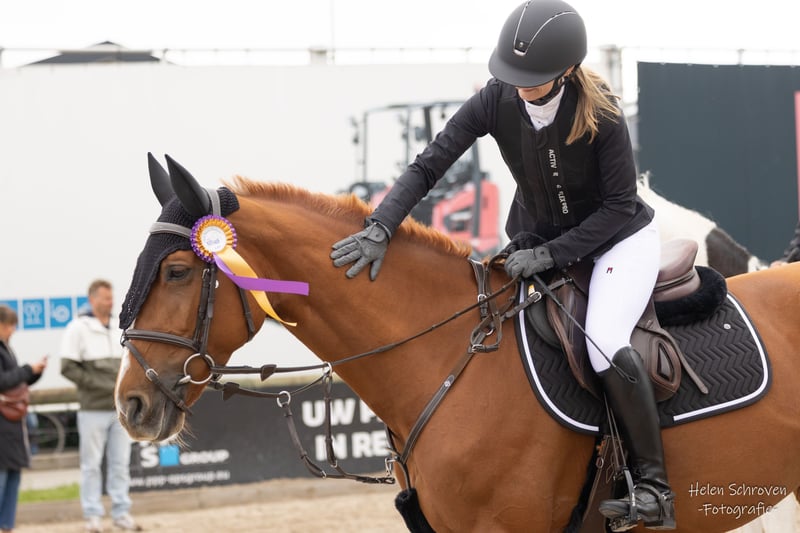 Met pijn in het hart bied ik mijn BWP merrie Eli's Sister James Z (Jelly) uit Epleaser van 't Heike X Quality Touch Z te koop aan. Deze mooie vosmerrie (°2017), ca. 1m63, is een fijn gebouwd en correct paard met een zeer betrouwbaar karakter. Ze loopt momenteel 1m parcours op wedstrijd en springt 1m20 op training, waarbij ze toont over voldoende vermogen en instelling voor verdere progressie. Wat haar extra bijzonder maakt, is haar uitzonderlijk braaf karakter. Ze is geschikt zowel voor beginnende ruiters als ambitieuze amateurs en fungeert echt als leermeester, terwijl ze tegelijk nog potentieel heeft voor hogere proeven met een ervaren ruiter. ✔ Zeer braaf in omgang rustig op stal makkelijk bij smid en dierenarts laad vlot op trailer betrouwbaar op buitenrit, alleen en in groep ook mee naar zee geweest ✔ Gezondheid geen blessureverleden klinisch gekeurd (foto’s beschikbaar) lichte stofallergie, goed onder controle met aangepast management en zonder invloed op sportprestaties ✔ Extra info Locatie: Affligem (België) Wordt verkocht zonder materiaal (1 deken en halster inbegrepen) Correct en fijn te rijden paard met aangename mond en werkwillige instelling Deze merrie is ideaal voor iemand die een betrouwbaar sportpaard zoekt om plezier te maken op wedstrijd én thuis. 📩 Meer info, video’s of kennismaking via privébericht. Vraagprijs: €18.000 (Prijs zeker onderhandelbaar bij goede match)