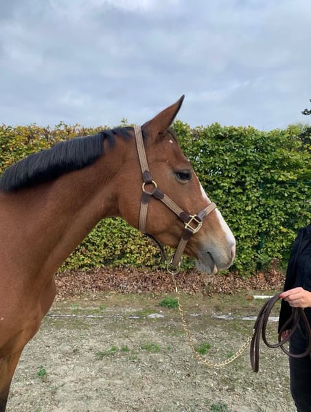 Rumba de Goorbossen Rumba est une jument de 8 ans, d'environ 1,65 m, issue d'une lignée sportive prestigieuse. Son père est le célèbre Le Blue Diamond de 't Ruytershof, et sa mère est Justine van de Goorbossen (par Casantos). Cette qualité se reflète clairement dans son apparence, ses mouvements et sa posture en selle. Rumba a été entièrement approuvée comme poulinière à l'âge de 4 ans et a été brièvement dressée en selle. En raison de contraintes de temps, elle a été remise au pâturage. Elle est actuellement en reprise d’entraînement depuis deux mois et progresse très bien. Elle maîtrise bien les allures de base et montre beaucoup d’équilibre, de souplesse et de volonté de travailler. En comportement, elle est très douce et calme, mais sensible en selle. Elle n’est donc pas adaptée à des cavaliers débutants, mais plutôt à une personne expérimentée avec une approche calme et cohérente. Nous poursuivons son entraînement, car elle montre un potentiel pour la compétition, et c’est assurément un cheval avec lequel on peut évoluer ensemble. Le prix dépendra de son niveau de formation au moment de la vente. Rumba est très calme chez le maréchal-ferrant et monte sans problème dans une van ou une camionnette. Pour plus d’informations ou vidéos, n’hésitez pas à m’envoyer un message privé.