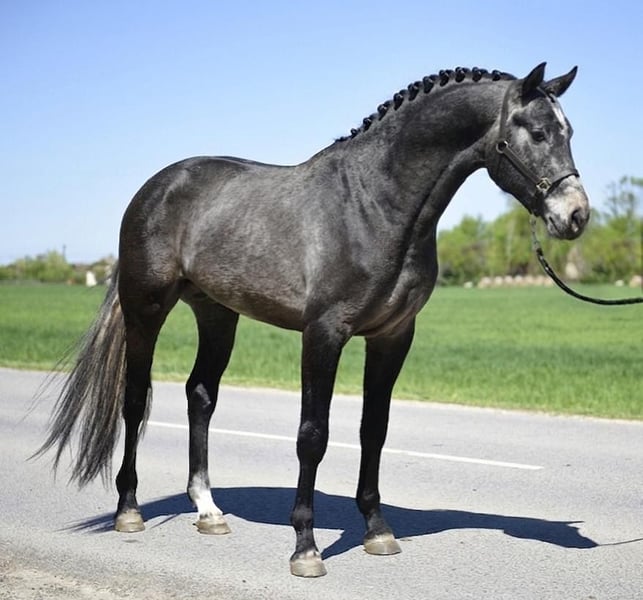 Three-year-old stallion seeking a nurturing hand Thanks to his pedigree, he has a promising future ahead. He possesses three good basic gaits and already demonstrates his talent and scope in free jumping with good technique. In handling, he is also well-behaved and uncomplicated. If you enjoy training and developing young horses, he is the perfect match for you. X-rays are available and can be viewed upon request. Location: Hungary Contact via WhatsApp: +36 20 959 3685