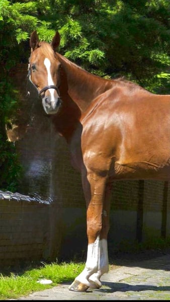 🤩 Incredibly versatile all-rounder 🤩🥰 A super sweet, calm, and well-behaved gelding. This darling is a 12-year-old gelding, standing 165 cm. Sire: Everglade Vdl - Kashmir vh Schuttershof Dam: Monaco - Animo He is well-behaved and easy to ride in dressage. Knows his work. In his younger years, he competed in show jumping up to 80 cm with his first owner. With his current owner, he has been doing dressage work and jumping lessons for the past five years – videos available. The current owner brought him to us because, unfortunately, she no longer has time for him due to studies. In recent years, he has been ridden less because of this (studies abroad). We have gradually resumed riding him, and he performs wonderfully! A gentle nature, not strong, and very calm. Suitable for less experienced riders. His teeth have recently been floated. He stands nicely rounded 🤩 Very sweet in handling, truly enjoys grooming and cuddling. Also good on walks and traffic-safe. He will be used for lessons here. Already walks out with absolute beginners who have never ridden before. He is that well-behaved! Both alone and in a group. Previously stabled overnight, now outside 24/7 with the herd. A friend to every horse. Reason for sale: end of hobby – saddle can be taken over for the right offer 💳 He deserves someone who will give him lots of love and attention. 0032496619693 Bornem, Belgium www.stalcloverhof.be Our website also provides information about our philosophy, vision, and operations. Thank you for taking the time to read this 🙏🏾❤️