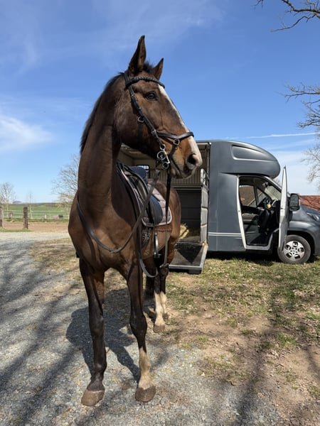 Dino ist ein 17‑jähriges belgisches Warmblut mit viel Herz und Charakter. Trotz seiner Vergangenheit ist er ein absoluter Verlasspartner – alleine ausreiten, neue Umgebungen oder Trubel meistert er souverän. Er benötigt eine erfahrene, ruhige Hand und faire, konsequente Arbeit. Beim ersten Gurten sowie beim ersten Angaloppieren zeigt er einen leichten Bauchzwang, der mit Routine gut händelbar ist. Bei regelmäßiger, strukturierter Arbeit war dies bei uns schnell kein Thema mehr. Dino möchte gefallen, arbeitet ehrlich mit und macht sehr viel Spaß. Er ist aktuell im Muskel- sowie Masseaufbau und sollte möglichst weitergeführt werden. Besonders wichtig ist mir für ihn ein stabiles Umfeld mit Herde und täglichem Koppelgang – das hat bei ihm sehr positive Fortschritte gebracht. Kurzinfos: Belgisches Warmblut 17 Jahre Sehr verlässlich im Gelände Erfahrene Reiter mit sensiblen Pferden Leichter Bauchzwang beim Start (händelbar) Herdenhaltung & täglicher Koppelgang erwünscht Dino ist für mich ein absoluter Goldschatz und wird nur in ein passendes, liebevolles Zuhause abgegeben