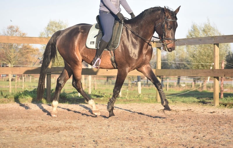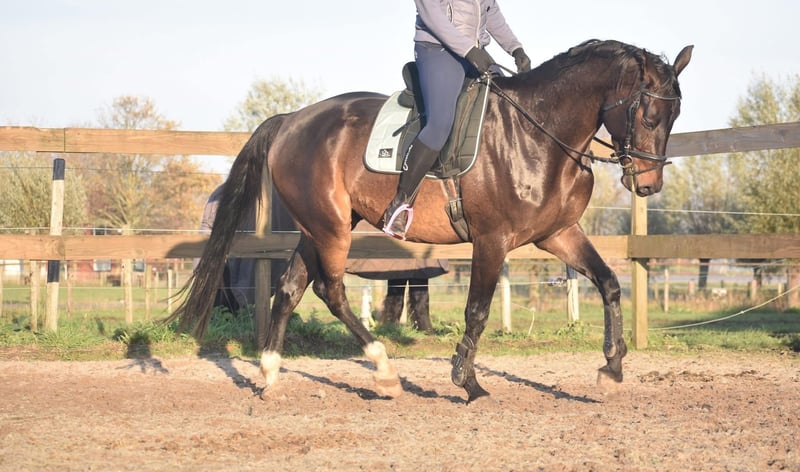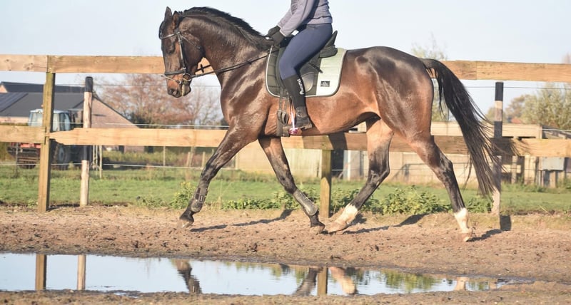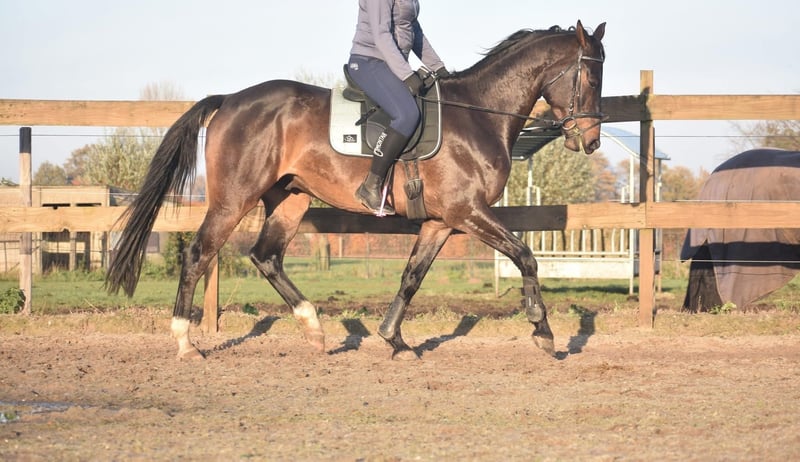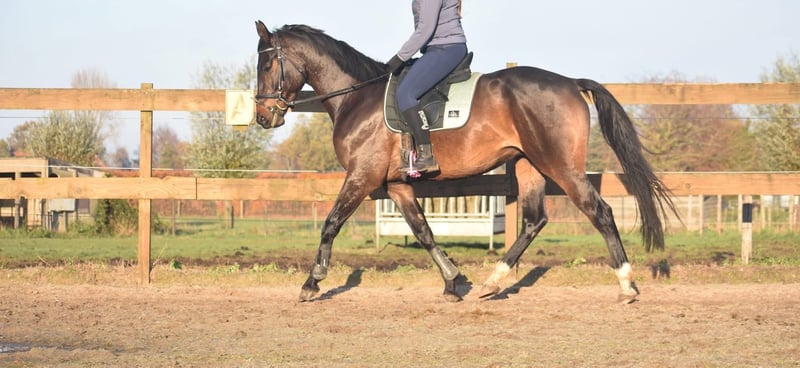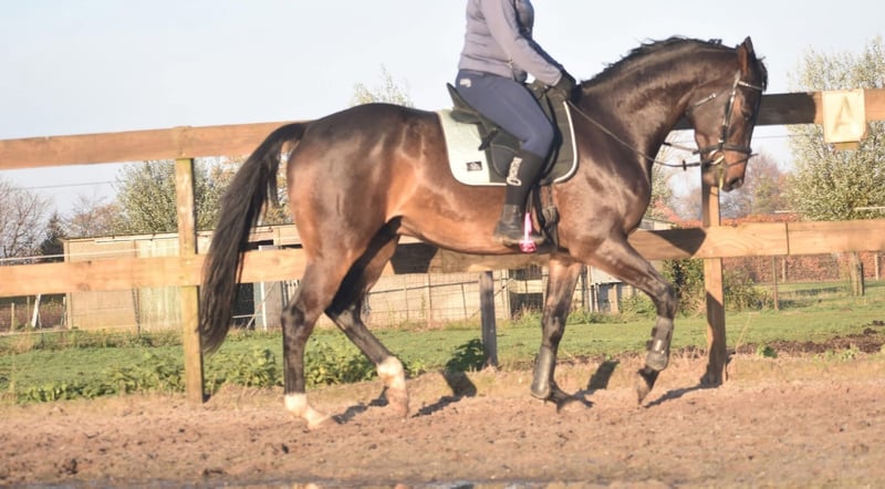 100 % correcte, röntgen ok , mooie, lieve BWP ruin Ontmoet Valesco van de Melane Rechtstreeks van de fokker mochten wij hem overnemen, samen met stalgenoot Voltaire van de Melane. Wat een parel! Een prachtige, zwartbruine 4,5 -jarige ruin van ca. 1.68m, met een aansprekende afstamming: Lavillion x Akribori x Ulft. Een perfecte combi voor zowel dressuur als springen. Klik HIER voor zijn papier. Valesco is werkelijk een schat van een paard. Op stal trekt hij met zijn charmante uitstraling alle aandacht en geniet hij volop van een knuffel. Onder het zadel laat hij hier zijn werklust en nuchtere karakter zien. Hij is erg fijn te rijden en biedt zijn ruiter een fijn gevoel in de hand. Hij is röntgenologisch en klinisch goedgekeurd, zowel de benen als rug en hals. Met zijn talent en veelzijdigheid kun je met Valesco meerdere kanten op. Een paard met een mooie toekomst , geschikt voor zowel sport ( dressuur+ springen) als recreatie. Hij is hier en voorheen goed verkeers,- en trailermak. Heel erg sociaal. Vrij van ( stal) gebreken. Valesco is kerngezond en kan enorm goed bewegen, met veel cadans , balans en ruimte. € 9750,- incl. merkzadel en hoofdstel compleet.` Een echte eyecather!