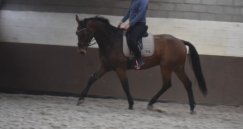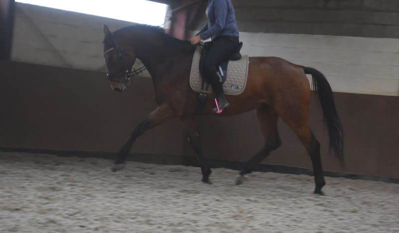 Rechtstreeks van de fokker mochten wij hem overnemen, samen met stalgenootje Valesco vd Melane. Ontmoet Voltaire van de Melane, een imposante en elegante 4,5-jarige ruin van ca. 1.75m, met een uitstekende afstamming: Querido VG x Concorde Z x Tresor D 12. Een paard met een mooie toekomst , geschikt voor zowel sport ( dressuur+ springen) als recreatie. Voltaire is prachtig gebouwd en beschikt over veel uitstraling en souplesse. Het is een vriendelijk, vrolijk en positief paard. Onder het zadel laat hij hier zijn natuurlijke balans en meewerkende karakter zien. Hij zoekt fijn de verbinding met de ruiter en is prettig te rijden. In de omgang is hij hier sterk, maar een echte lieverd. Nuchter, aanhankelijk en altijd in voor veel aandachtHij is hier en voorheen goed verkeers,- en trailermak. Heel erg sociaal. Vrij van ( stal) gebreken. Voltaire is kerngezond en kan enorm goed bewegen, met veel cadans , balans en ruimte. Hij is röntgenologisch en klinisch goedgekeurd, zowel de benen als rug en hals. 9750,- incl. merkzadel en hoofdstel compleet.