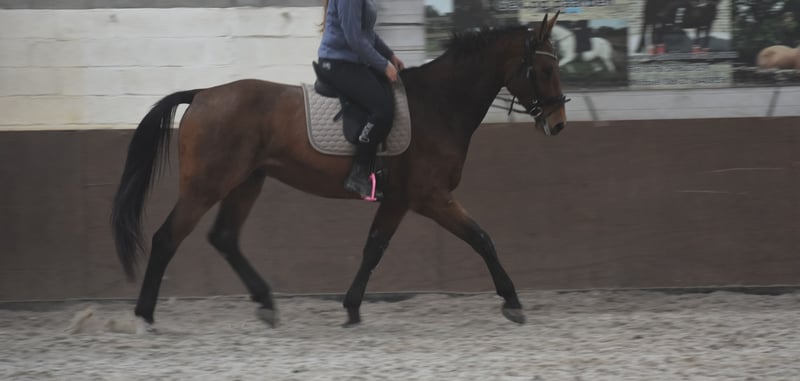 Direkt vom Züchter durften wir ihn zusammen mit seinem Stallkollegen Valesco vd Melane übernehmen. Lernen Sie Voltaire van de Melane kennen, einen imposanten und eleganten 4,5-jährigen Wallach von ca. 1,75 m, mit hervorragender Abstammung: Querido VG x Concorde Z x Tresor D 12. Ein Pferd mit großem Potenzial, geeignet für den Sport (Dressur + Springen) sowie für Freizeitaktivitäten. Voltaire ist wunderschön gebaut und verfügt über viel Ausstrahlung und Elastizität. Er ist freundlich, fröhlich und positiv im Wesen. Unter dem Reiter zeigt er seine natürliche Balance und seinen kooperativen Charakter. Er sucht die Verbindung zum Reiter und ist angenehm zu reiten. Im Umgang ist er robust, aber trotzdem ein echtes Schmusepferd. Nüchtern, anhänglich und immer offen für viel Aufmerksamkeit. Er ist hier und zuvor gut im Straßenverkehr sowie beim Trailerfahren gewesen. Sehr sozial. Frei von (stall)bedingten Defekten. Voltaire ist kerngesund und kann sich hervorragend bewegen, mit viel Takt, Balance und Raumgefühl. Röntgenologisch und klinisch gut geprüft, sowohl die Beine als auch Rücken und Hals. 9750 € inklusive Marken-Wanderreithalfter und Komplettzaum.