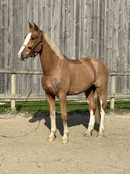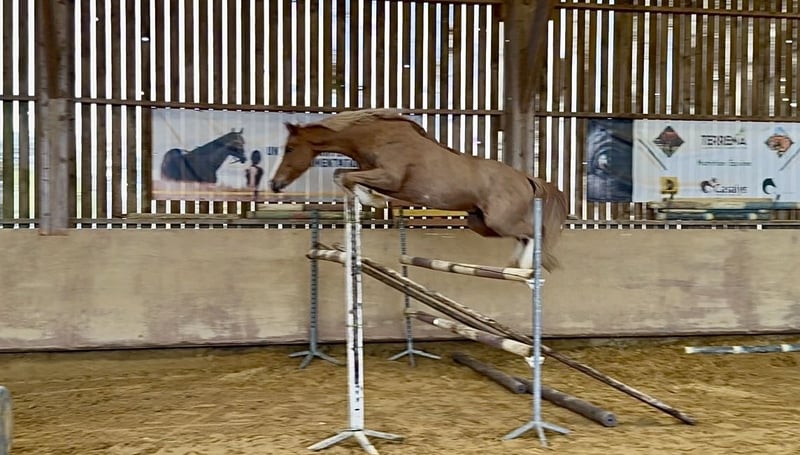 Hier ist die Übersetzung des Inserats ins Deutsche: --- 🤩 TOLLES AUSSEHEN FÜR DIESEN 5-JÄHRIGEN HENGST 🤩 🧬 Außergewöhnliche Abstammung, Casago x U Chin van Schuttershof Seine Mutter war erfolgreich bis 130 cm, und seine Großmutter ist nichts Geringeres als die Schwester von Silver Deux de Virton, der selbst bis 160 cm erfolgreich war. Kleiner Wallach von ca. 1,60 m, noch unerfahren im Training, mit schöner Bewegungsqualität, elegantem Sprung über die Stangen, viel Blut, hat mit Reiter angefangen zu springen, guter Kopf, eher sensibel. Zur Ausbildung für ambitionierte Freizeitreiter oder zur Wertschätzung geeignet. 🩺 Röntgenbilder: Ein kleiner Hinweis auf OCD im Fesselgelenk, der Rest ist unauffällig ☑️ In der Nähe von Angers (49) sichtbar. --- Wenn du noch eine andere Sprache brauchst, stehe ich gern zur Verfügung!