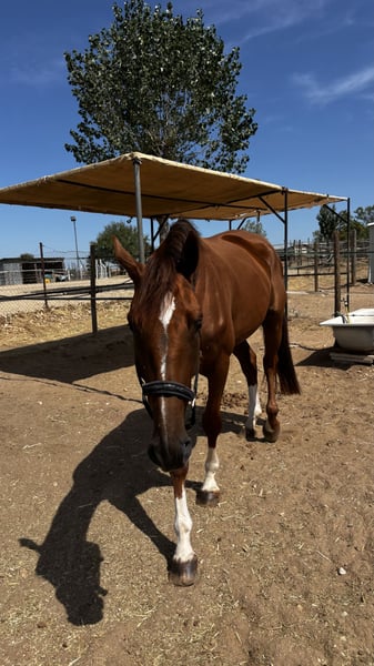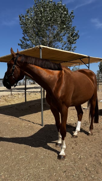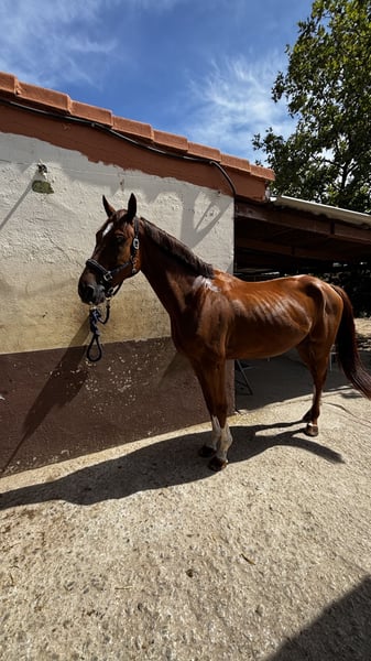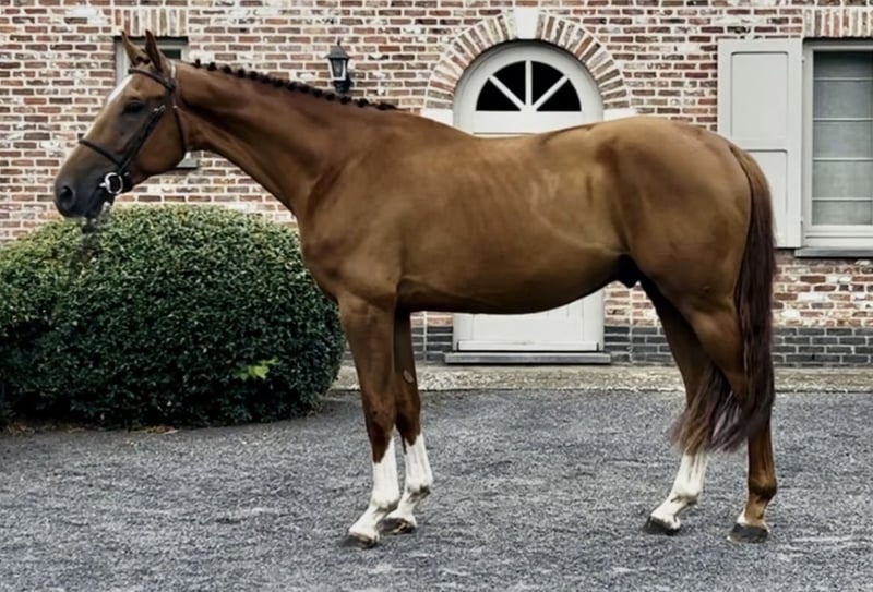 5-jarige ruin, recent onder het zadel. Een zeer aantrekkelijk, heter paard dat zijn ras duidelijk weerspiegelt, met mooie, expressieve bewegingen en een zachte, correcte mond. Hoewel hij is opgeleid voor het springen, toont hij goede en elegante gangen, waardoor hij ook geschikt is voor de dressuur. Buitenrijden in het bos en in het veld doet hij zeer goed en zelfverzekerd. Nog wat groen en heeft verdere opleiding nodig. Geschikt voor een ervaren ruiter, aangezien het paard een moeilijk karakter heeft en een zelfverzekerde aanpak vereist. Zijn vader loopt momenteel op 1.60 m-niveau met goede resultaten en komt uit zeer sterke bloedlijnen. Een kwaliteitsvol en veelzijdig toekomstpaard met de juiste ruiter. 5-year-old horse, recently entered. A very attractive, hot-blooded horse that clearly reflects his breed, with nice, expressive movement and a soft, correct mouth. Although trained for show jumping, he shows good and elegant movements, allowing him to perform well in dressage. Very good and confident when hacking out in the countryside. Still a bit green and in need of further education. Suitable for an experienced rider, as the horse has a difficult character and requires confident handling. His sire is currently competing at 1.60m level with good results and comes from very strong bloodlines. A quality and versatile prospect with the right rider. Cheval de 5 ans, récemment débourré. Un cheval attirant, sanguin, qui reflète clairement sa race, avec des allures belles et expressives et une bouche douce et correcte. Bien qu’entraîné pour le saut d’obstacles, il montre de bonnes allures élégantes, ce qui lui permet également de bien s’exprimer en dressage. Très sûr et confiant lors des sorties en extérieur. Encore un peu vert et nécessitant une formation supplémentaire. Convient à un cavalier expérimenté, car le cheval a un caractère difficile et demande une conduite assurée. Son père concourt actuellement au niveau 1.60 m avec de bons résultats et provient de lignées très solides. Un prospect de qualité et polyvalent avec le bon cavalier. 5-jähriges Pferd, kürzlich angeritten. Ein sehr attraktives, heißblütiges Pferd, das seine Rasse deutlich widerspiegelt, mit schönen, ausdrucksstarken Bewegungen und einem weichen, korrekten Maul. Obwohl es für den Springsport ausgebildet wurde, zeigt es gute und elegante Grundgangarten, wodurch es sich auch gut für die Dressur eignet. Sehr brav und selbstsicher beim Ausreiten im Gelände. Noch etwas grün und benötigt weitere Ausbildung. Geeignet für einen erfahrenen Reiter, da das Pferd einen schwierigen Charakter hat und eine sichere, konsequente Hand erfordert. Sein Vater startet derzeit erfolgreich auf 1.60-m-Niveau und stammt aus sehr starken Blutlinien. Ein qualitativ hochwertiges und vielseitiges Nachwuchspferd mit dem richtigen Reiter.